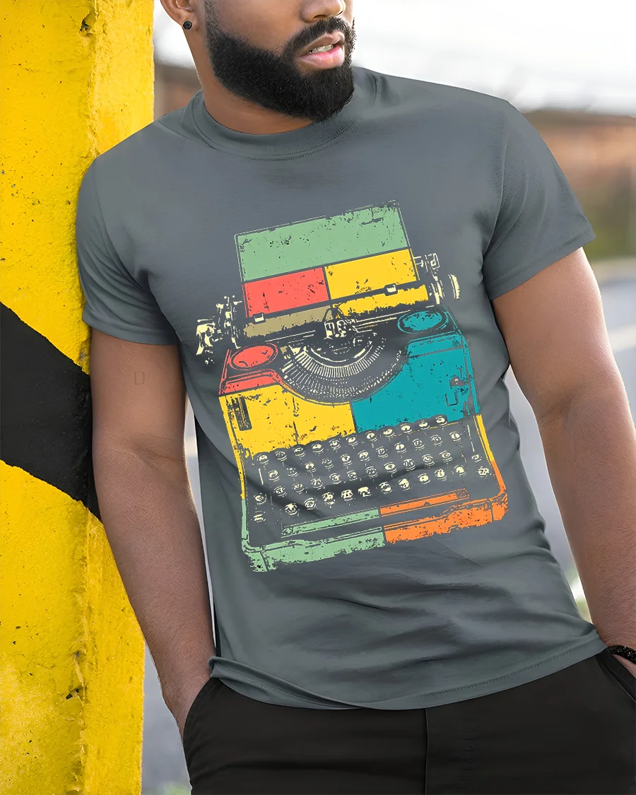 Crafted from soft and breathable fabric, this graphic t-shirt delivers comfort and durability, ideal for long days at work, casual outings, or relaxing weekends. Whether you are a writer, a fan of retro aesthetics, or simply love unique statement tees, this shirt adds character and personality to your wardrobe. Its colorful typewriter design not only stands out but also sparks conversations and reflects your creative spirit.