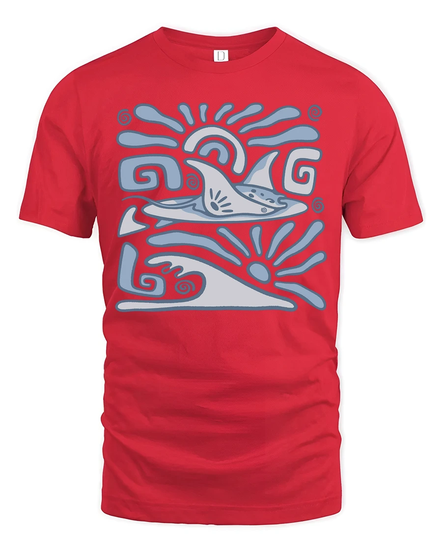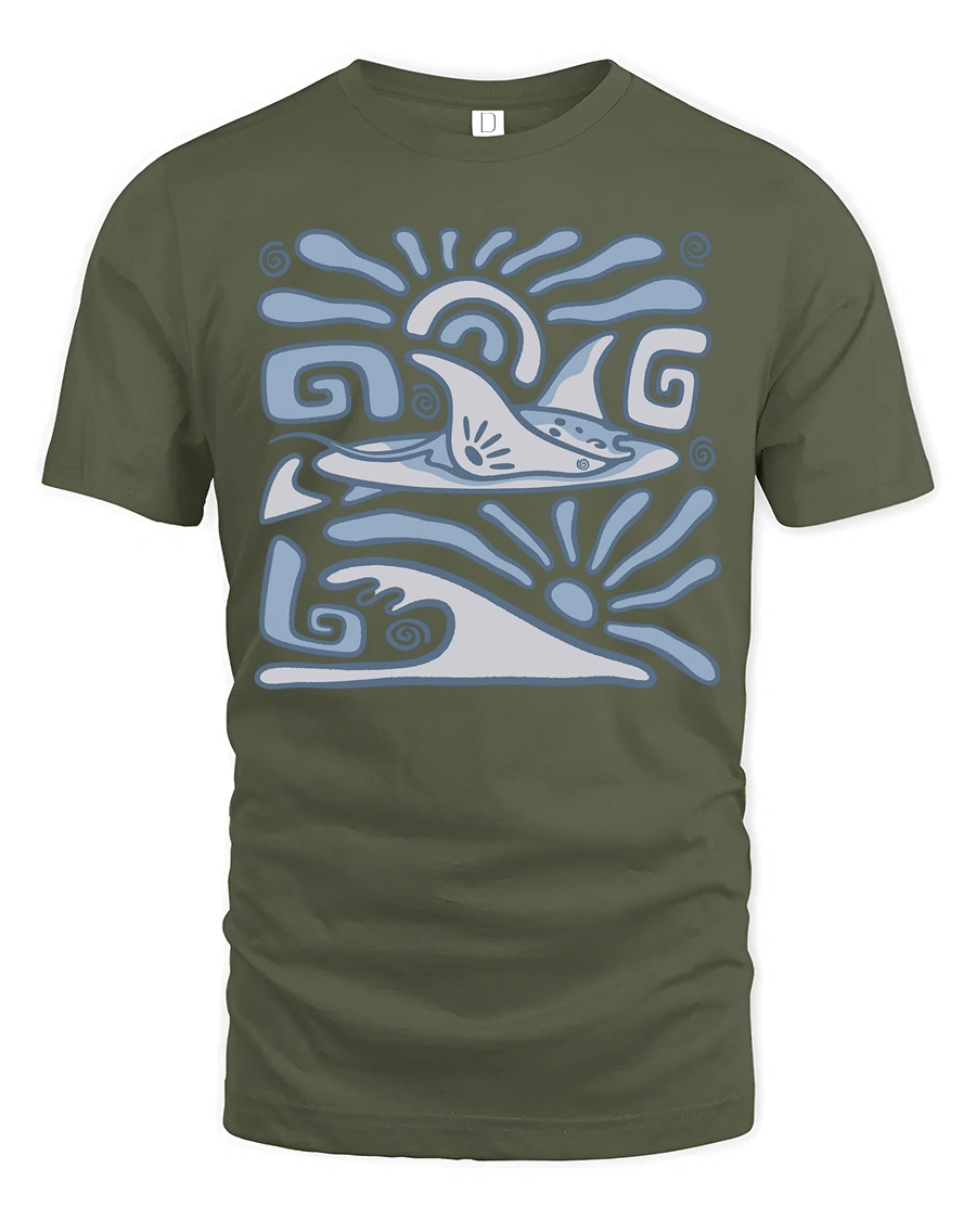 Celebrate ocean energy with the Retro Dolphin Wave Graphic Tee Ocean Tribal Style Tshirt featuring a stylized dolphin surrounded by flowing wave inspired patterns.