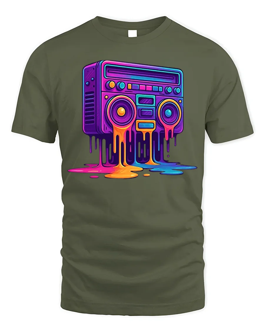 The Retro Neon Melting Boombox Graphic Art T-Shirt brings back the vibrant energy of the 80s with a bold modern twist. Featuring a colorful dripping boombox design that looks like it’s melting into neon waves, this tee captures the fusion of music, nostalgia, and art in one striking print. It’s a perfect pick for music lovers, DJs, and anyone who loves expressive streetwear.