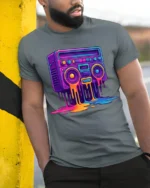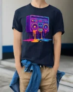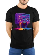 Express your passion for vintage vibes and artistic creativity with the Retro Neon Melting Boombox Graphic Art T-Shirt. It’s not just apparel—it’s wearable art that glows with personality and style. Pair it with jeans or joggers to create an effortlessly cool and colorful outfit that stands out anywhere you go.
