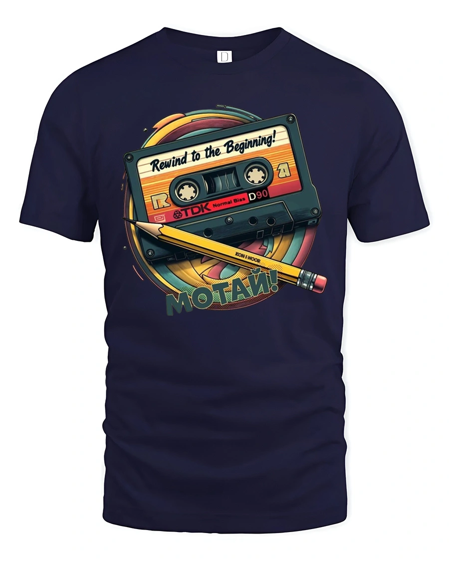 Retro Rewind To The Beginning Cassette Tape Graphic T Shirt captures the charm of classic music culture with a nostalgic design inspired by vintage cassette tapes. The artwork features a retro tape and pencil combination that instantly reminds fans of the simple joy of rewinding a favorite song. Bright retro colors and detailed illustration create a throwback aesthetic that celebrates timeless music memories.