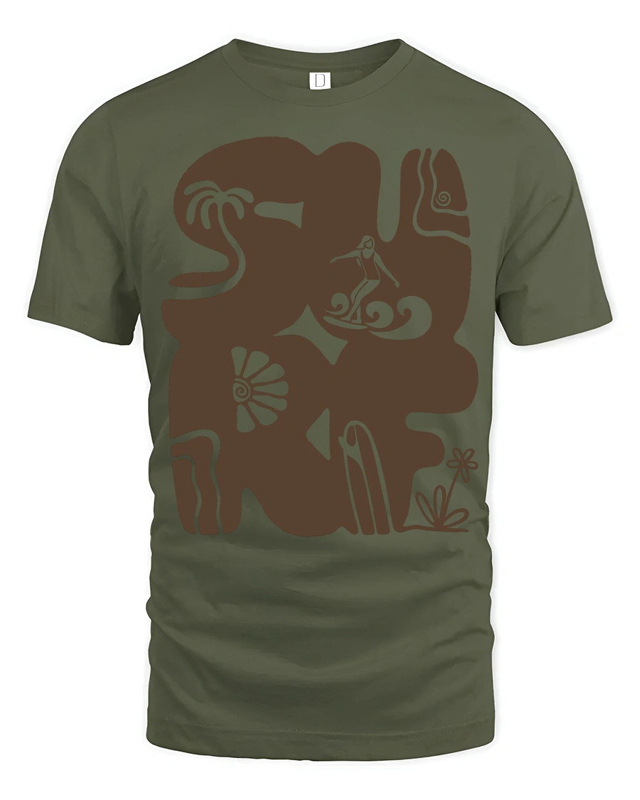 Retro Surf Art Abstract Beach Aesthetic Minimal Graphic Tee - military green t-shirt on white background
