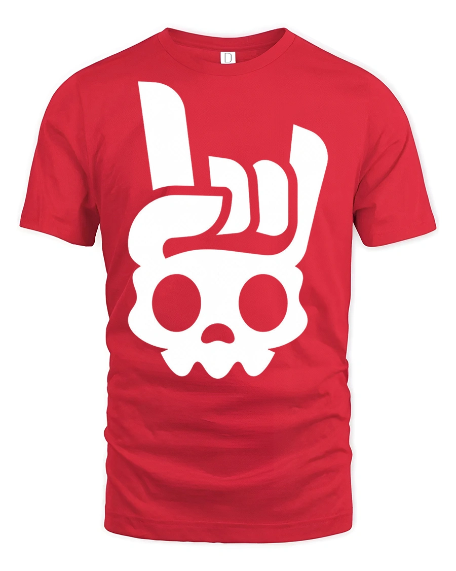 The artwork features a unique skull integrated with a rock hand gesture, creating a striking symbol of music, rebellion, and style.