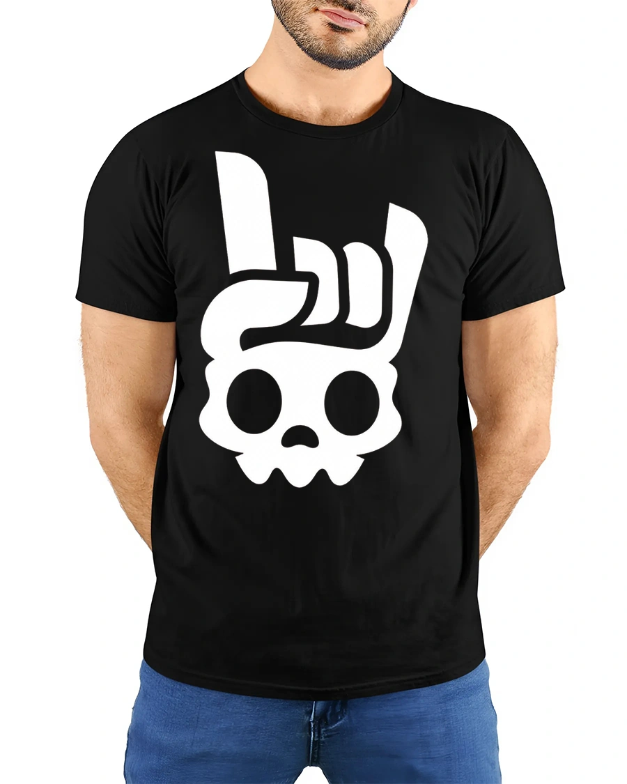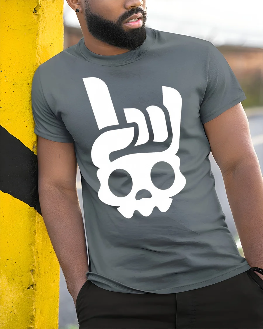 Rock On Skull Hand Sign Minimalist Cool Graphic T Shirt combines bold attitude with clean and modern design.