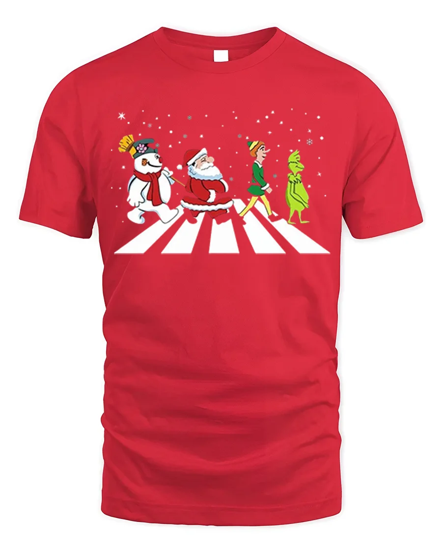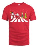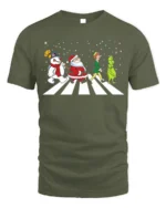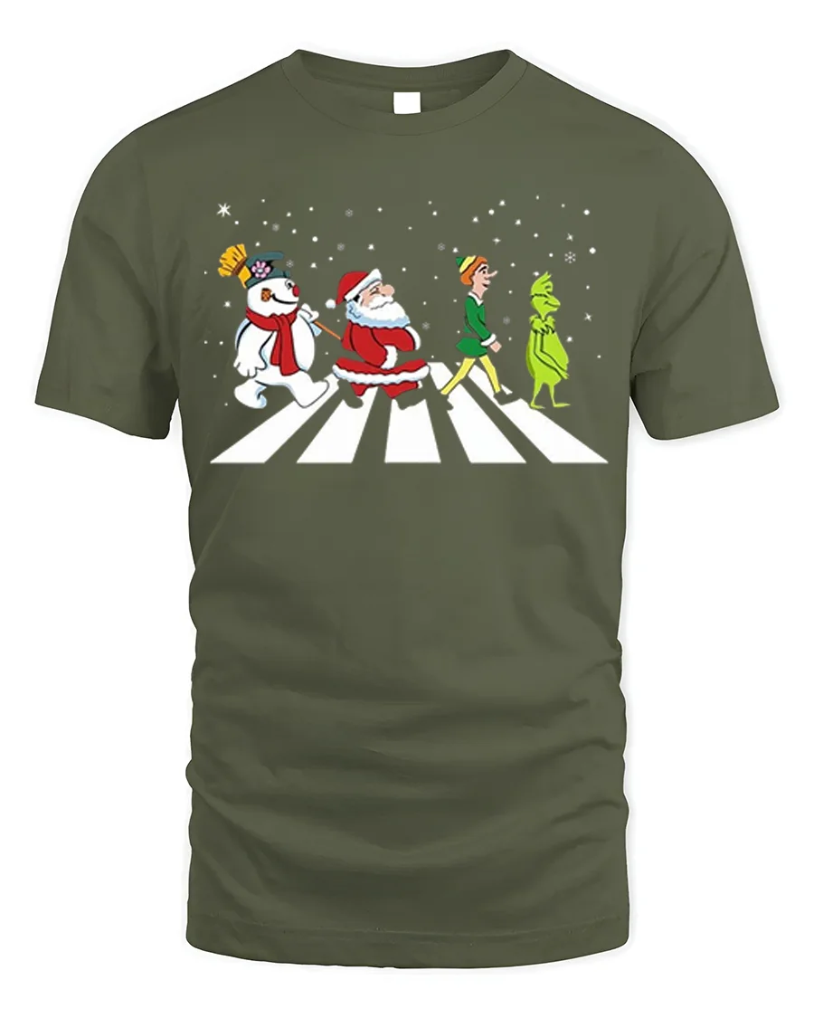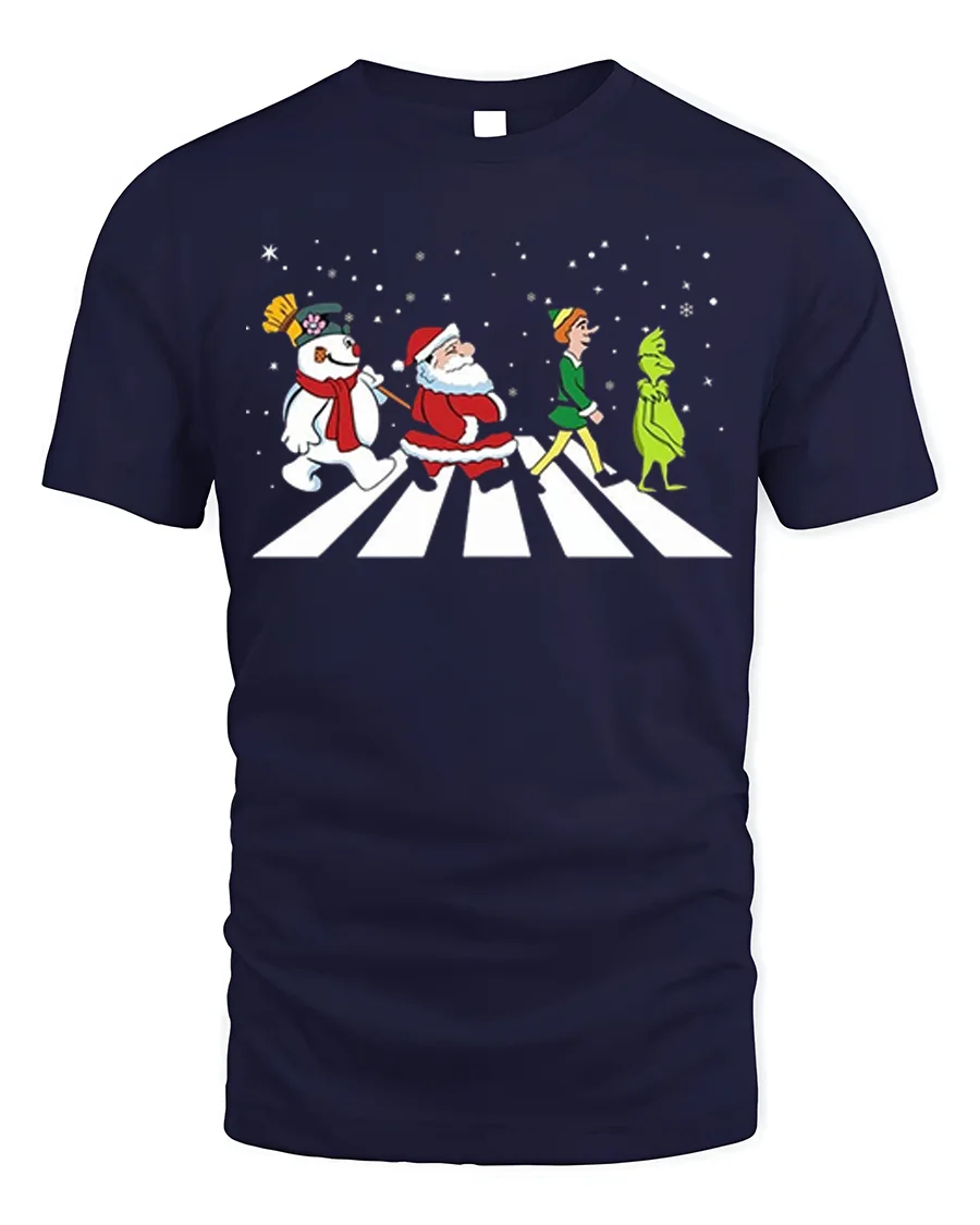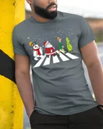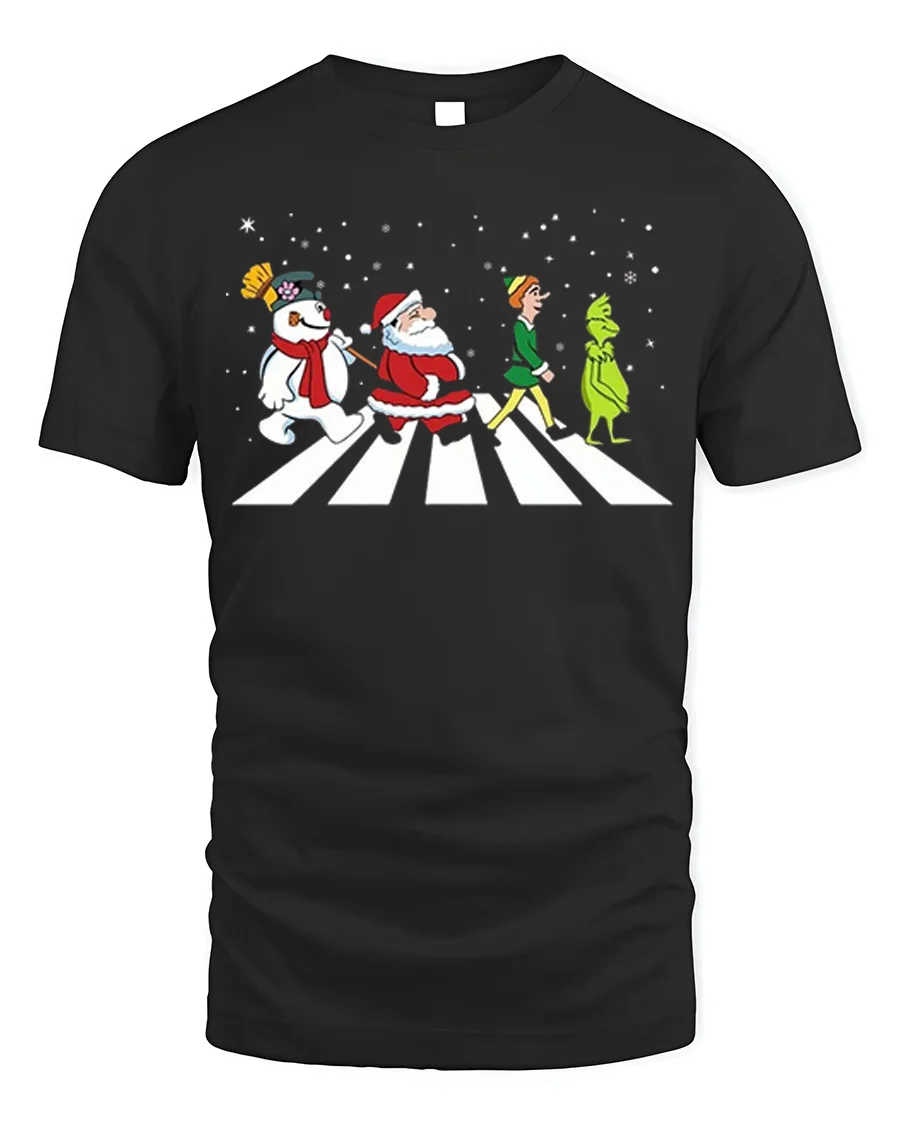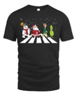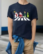Celebrate the season with laughter and nostalgia in the Santa Frosty Elf Grinch Funny Christmas Walk Graphic T-Shirt. Featuring Santa, Frosty, the Elf, and the Grinch walking together across a snowy crosswalk, this playful design brings together everyone’s favorite holiday characters in one iconic scene. It’s a clever, festive tribute to Christmas classics and a guaranteed conversation starter at any holiday gathering.