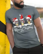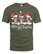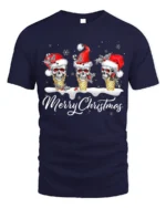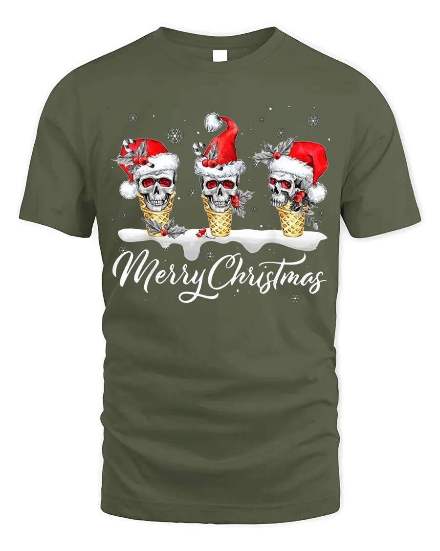 Celebrate Christmas with a darkly delightful twist in our Santa Skull Ice Cream Merry Christmas Gothic T-Shirt. This creative design features three skulls wearing Santa hats, set inside ice cream cones surrounded by snowflakes — blending spooky style with festive cheer. Perfect for gothic fashion lovers and anyone who enjoys standing out during the holidays.