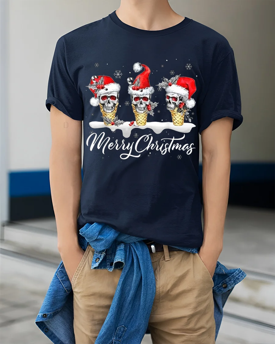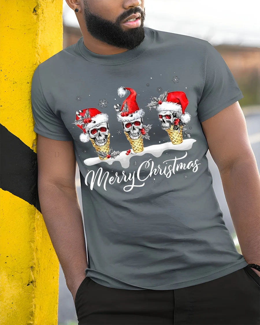 Home Halloween & Noel Santa Skull Ice Cream Merry Christmas Gothic T-Shirt
