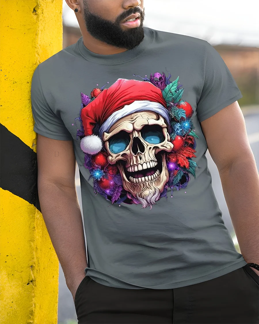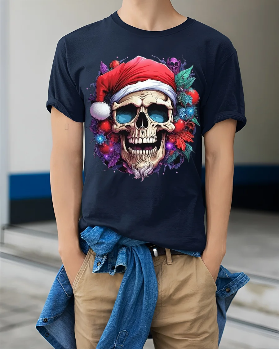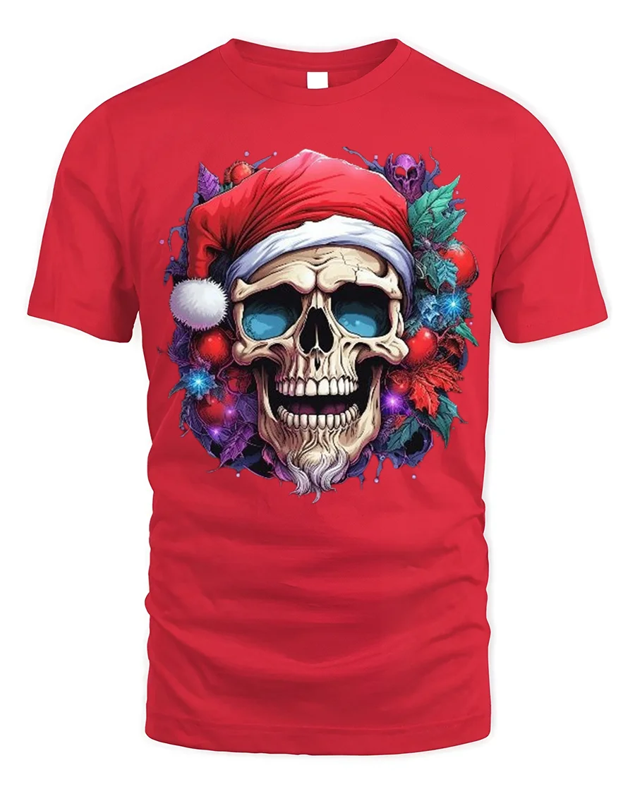 Crafted from soft, premium cotton fabric, this Christmas skull t-shirt ensures maximum comfort and durability. The high-definition print captures every detail — from the glowing blue eyes to the colorful holiday accents — making it a standout addition to your winter wardrobe. Ideal for Christmas parties, concerts, or casual hangouts, it’s the perfect blend of cool and festive.