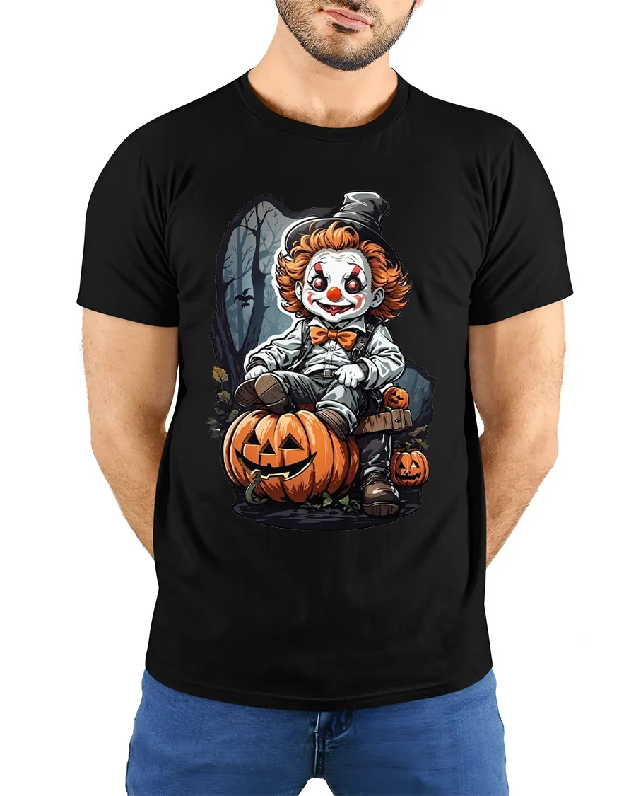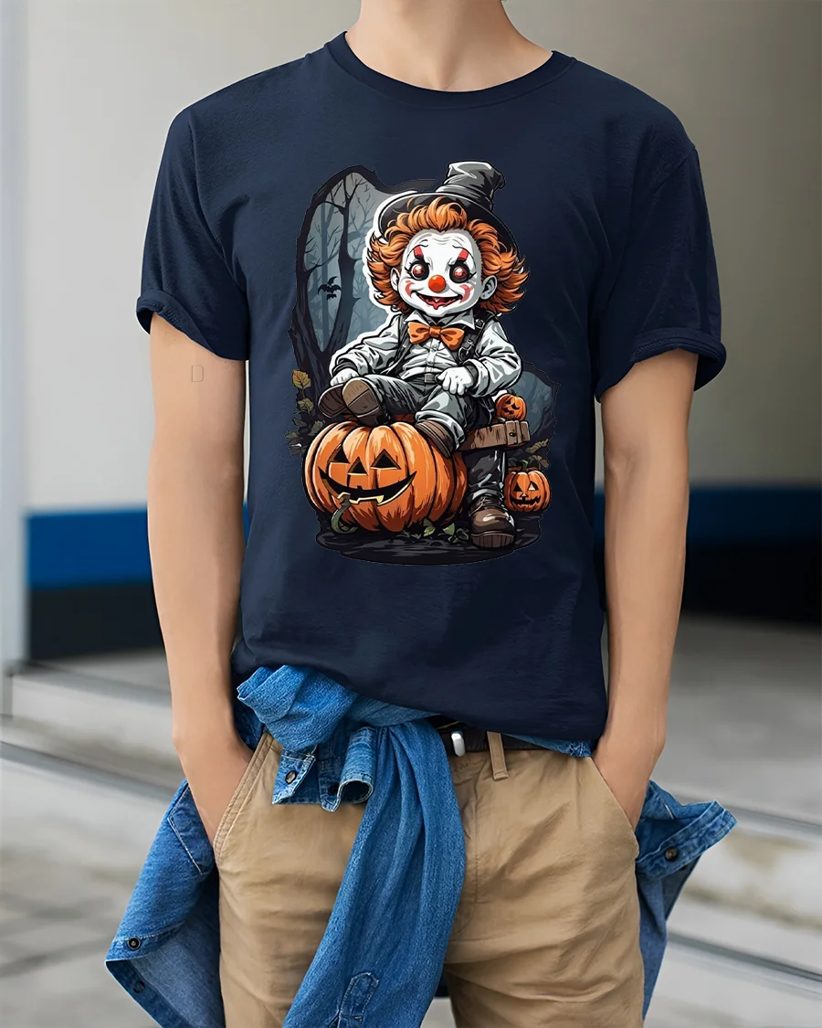Made with comfort in mind, this Halloween graphic t-shirt is ideal for parties, trick-or-treat events, haunted house visits, or simply showing off your love for scary themes. The scary clown and pumpkin design instantly brings a festive yet eerie feel, making it a great conversation starter. Whether you are dressing casually or layering it under a jacket for cooler autumn evenings, this shirt keeps you stylish and comfortable.