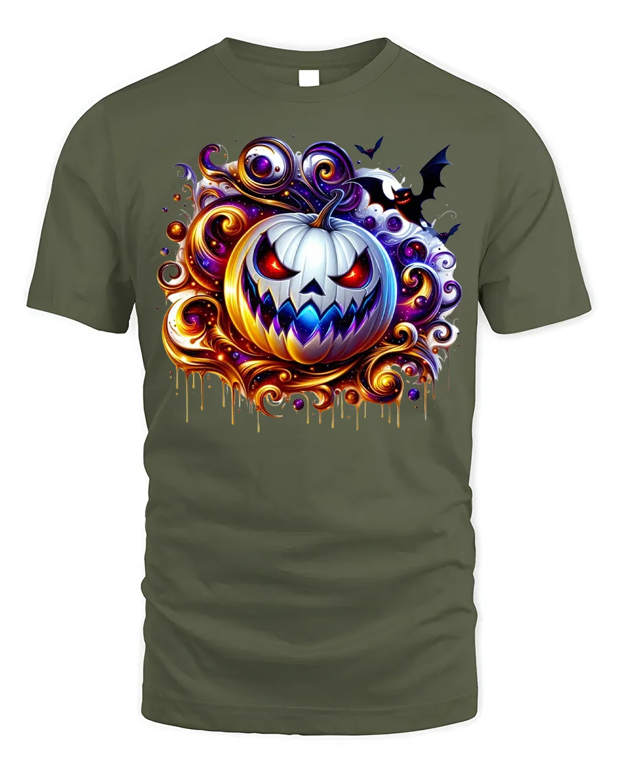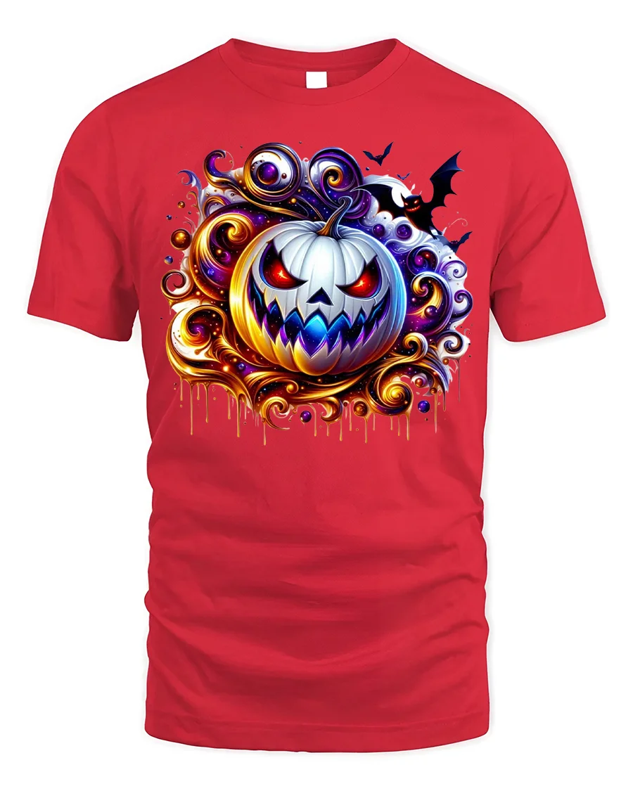 Stand out this spooky season with the Scary White Pumpkin Halloween Graphic T-Shirt, a bold and chilling design perfect for fans of eerie Halloween style. Featuring a menacing white jack-o’-lantern with glowing red eyes, surrounded by swirling flames of gold, purple, and black, this shirt captures the dark energy of October nights. Bats flying in the background add the finishing touch, making it the ultimate tee for Halloween lovers.