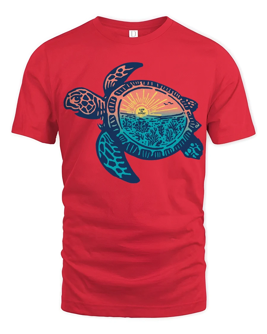 Sea Turtle Sunset Ocean Life Graphic Tee Coastal Aesthetic - red t-shirt on white background