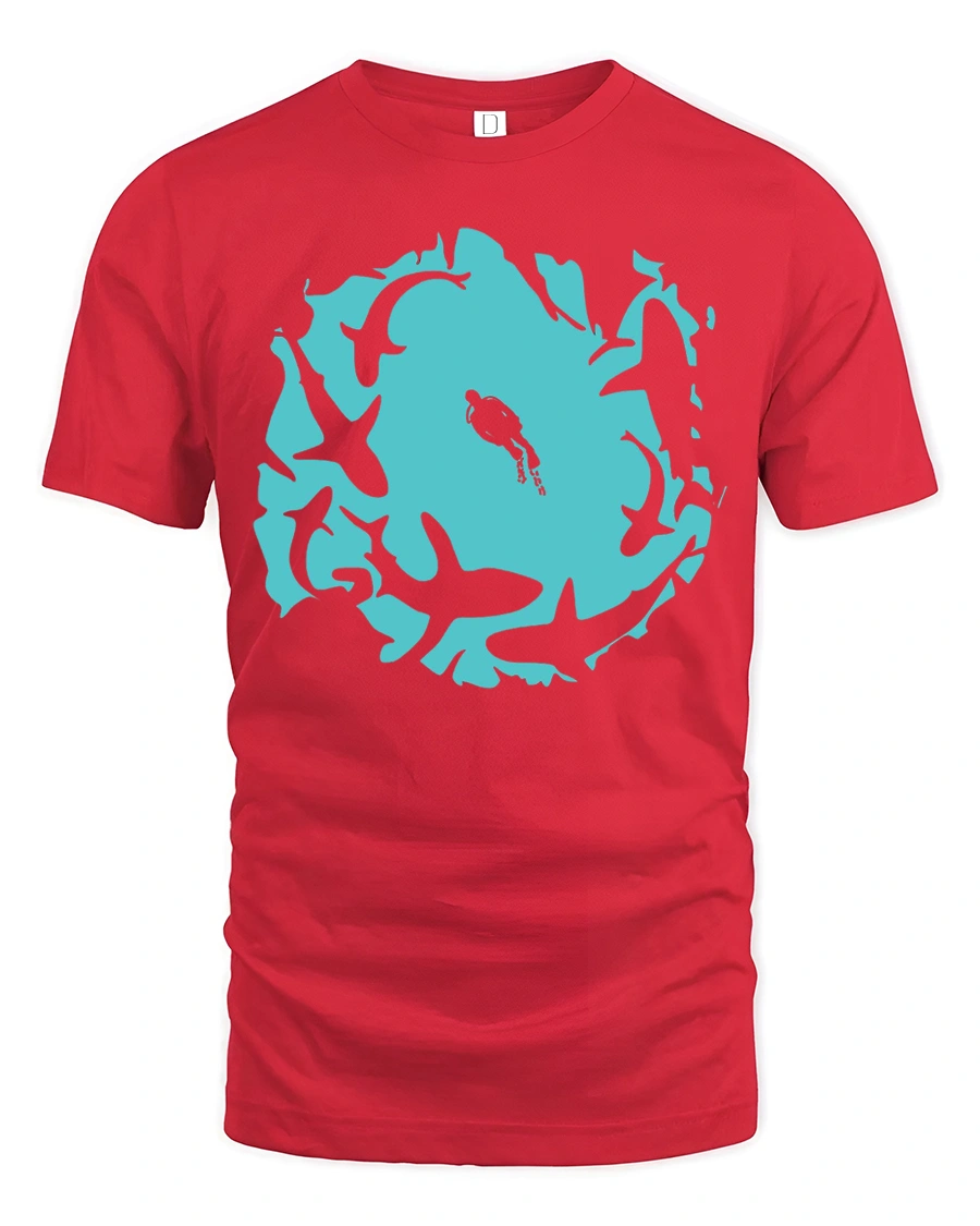 Shark Circle Ocean Diver Tshirt Cool Marine Life Graphic - red t-shirt on white background