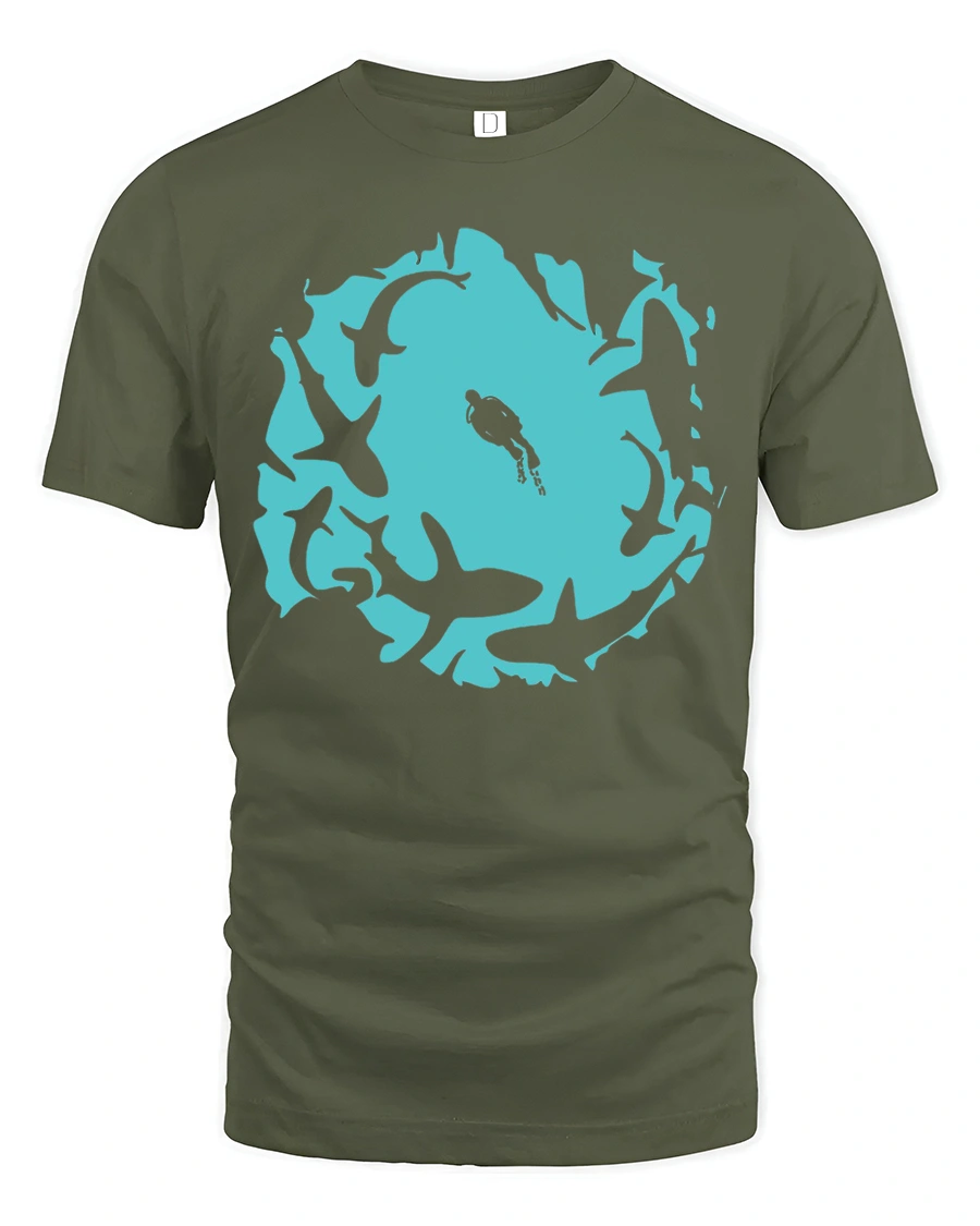 Shark Circle Ocean Diver Tshirt Cool Marine Life Graphic - military green t-shirt on white background