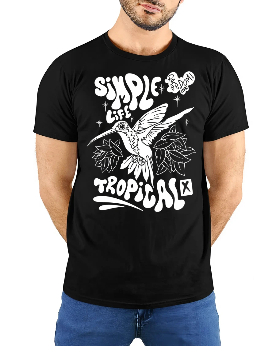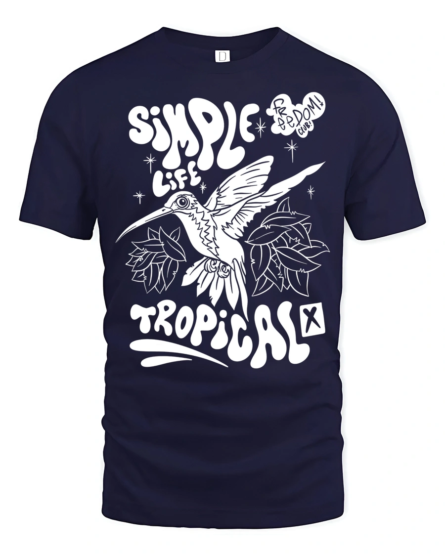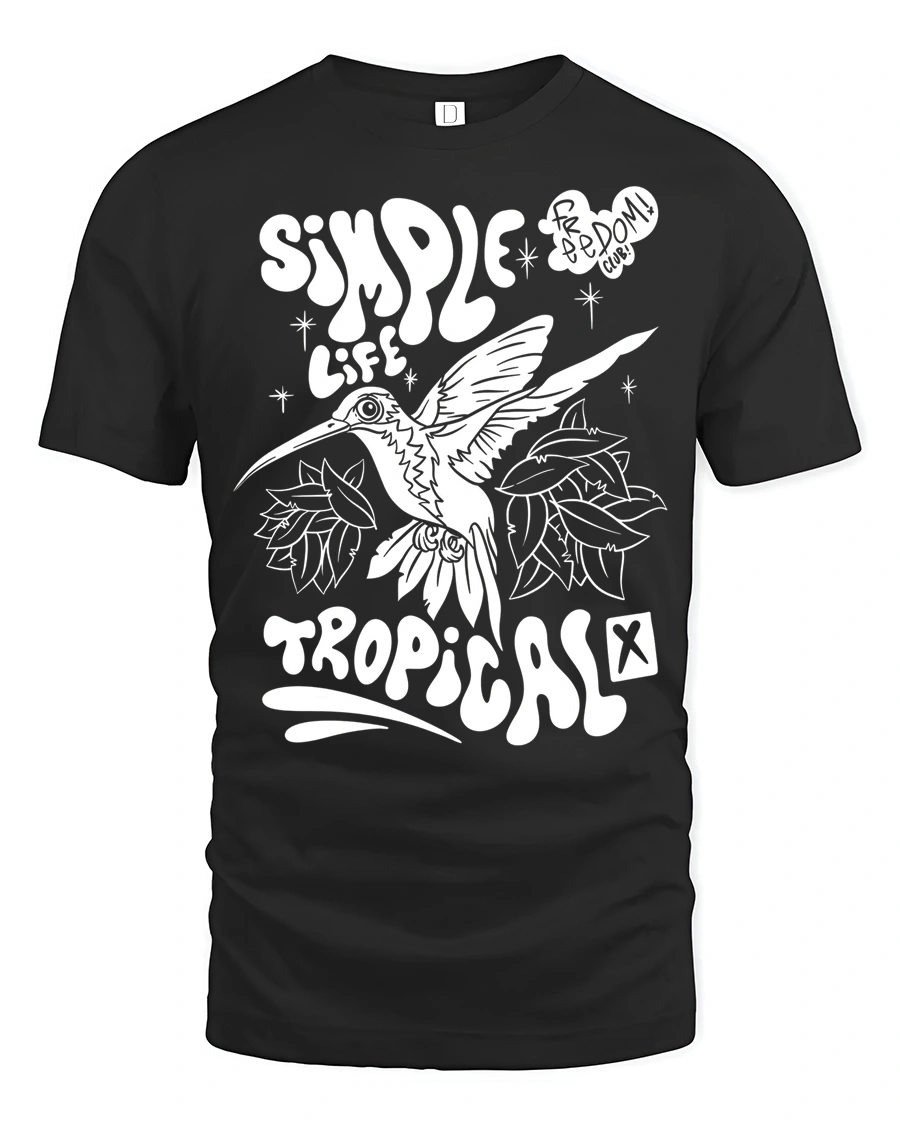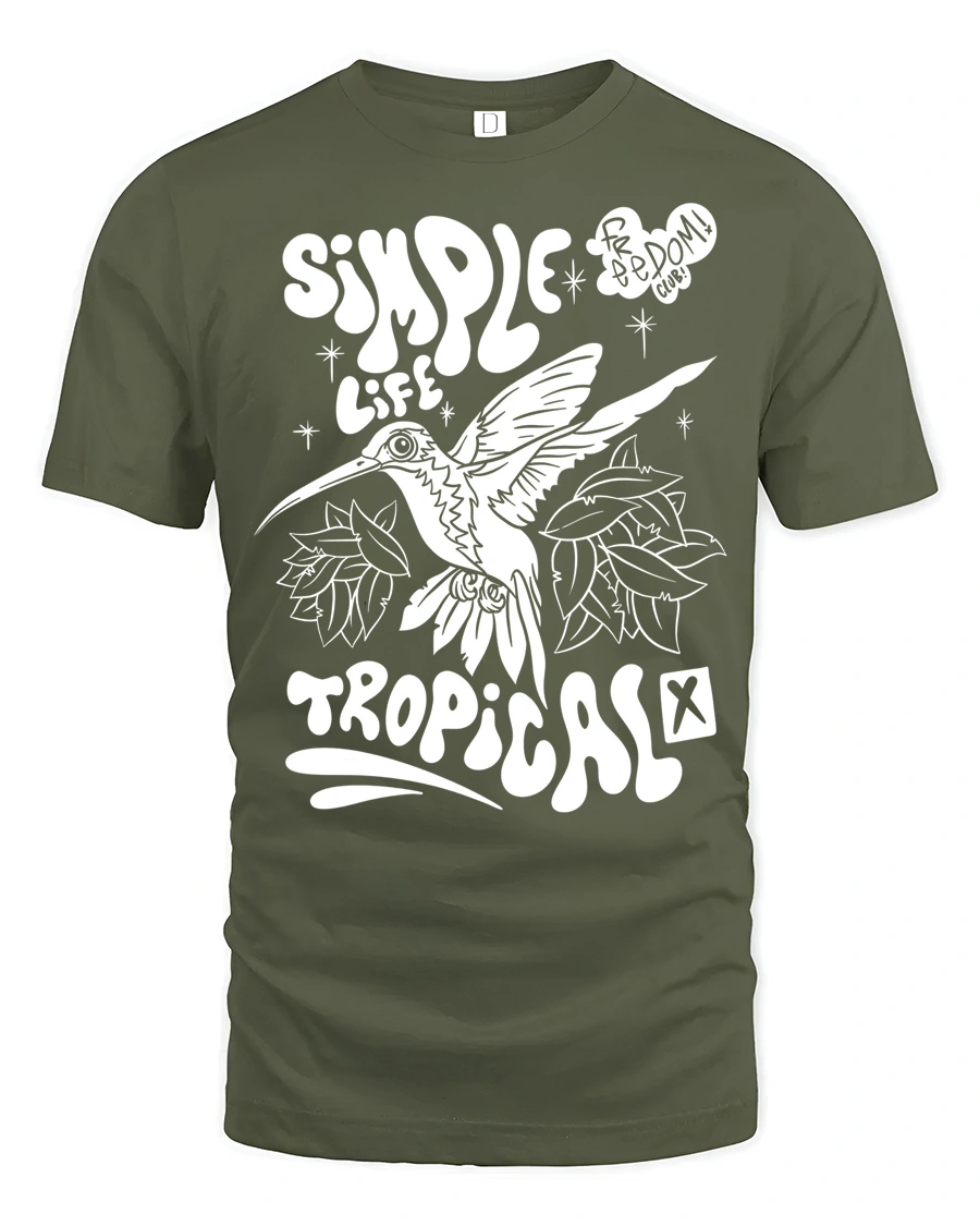Celebrate calm energy and relaxed style with the Simple Life Tropical Hummingbird Graphic Tee Freedom Vibes featuring an artistic bird illustration combined with playful typography.