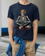 The Skeleton Gamer With Headphones Cool Gaming Graphic T-Shirt pairs perfectly with jeans, joggers, or shorts for an effortlessly cool look.
