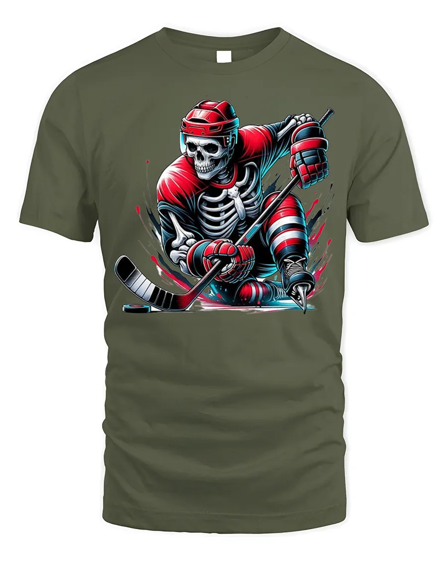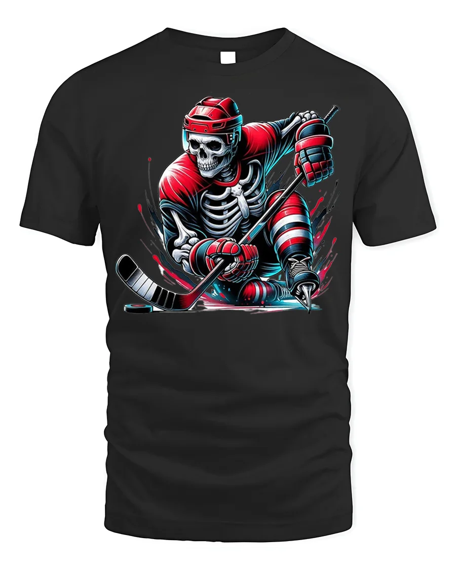 Celebrate the toughness of hockey and stand out in the crowd with this skeleton hockey player graphic tee—a must-have for those who bring fearless energy to both the rink and everyday life.