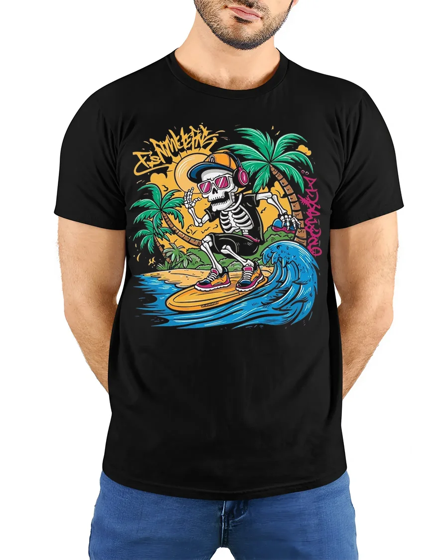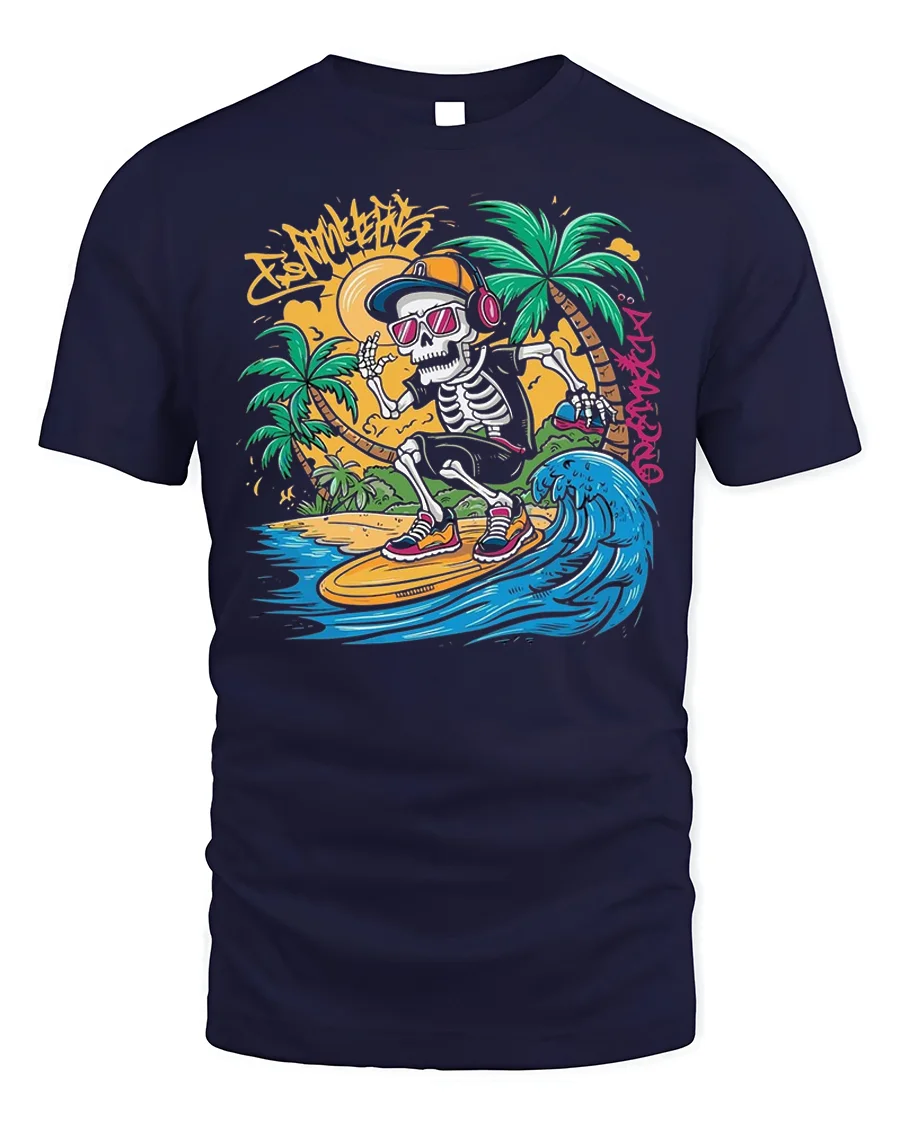 Made from soft, breathable material, this skeleton surfing tshirt ensures comfort and durability for everyday wear. Whether you’re hitting the beach, chilling with friends, or enjoying a summer festival, this shirt keeps your style cool and unique. The graphic combines surf culture with edgy skeleton art, making it a fun way to express personality and vibes.