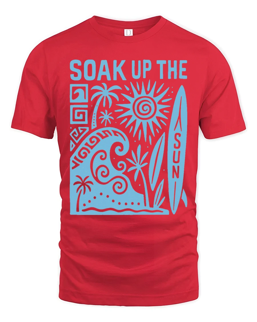 Soak Up The Sun Retro Surf Beach Vibes Graphic Tee Tshirt - red t-shirt on white background