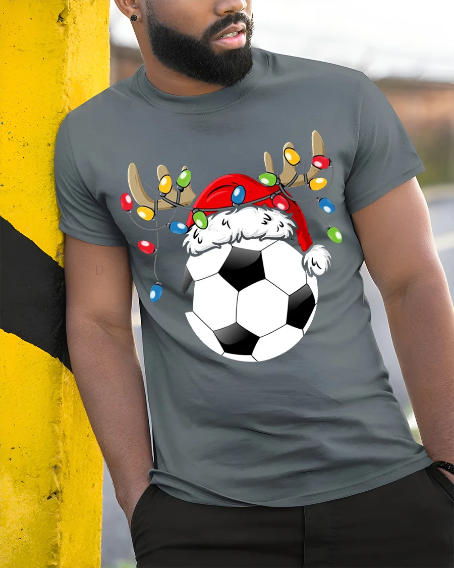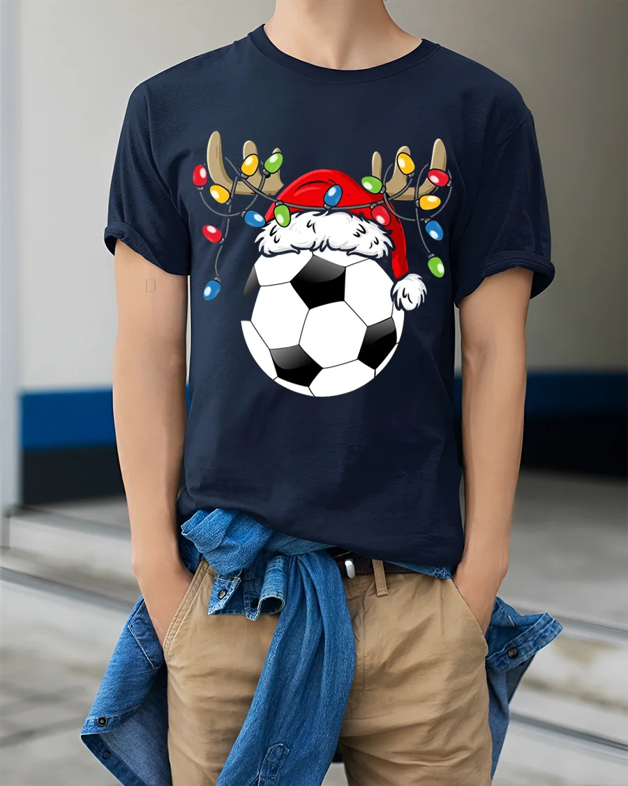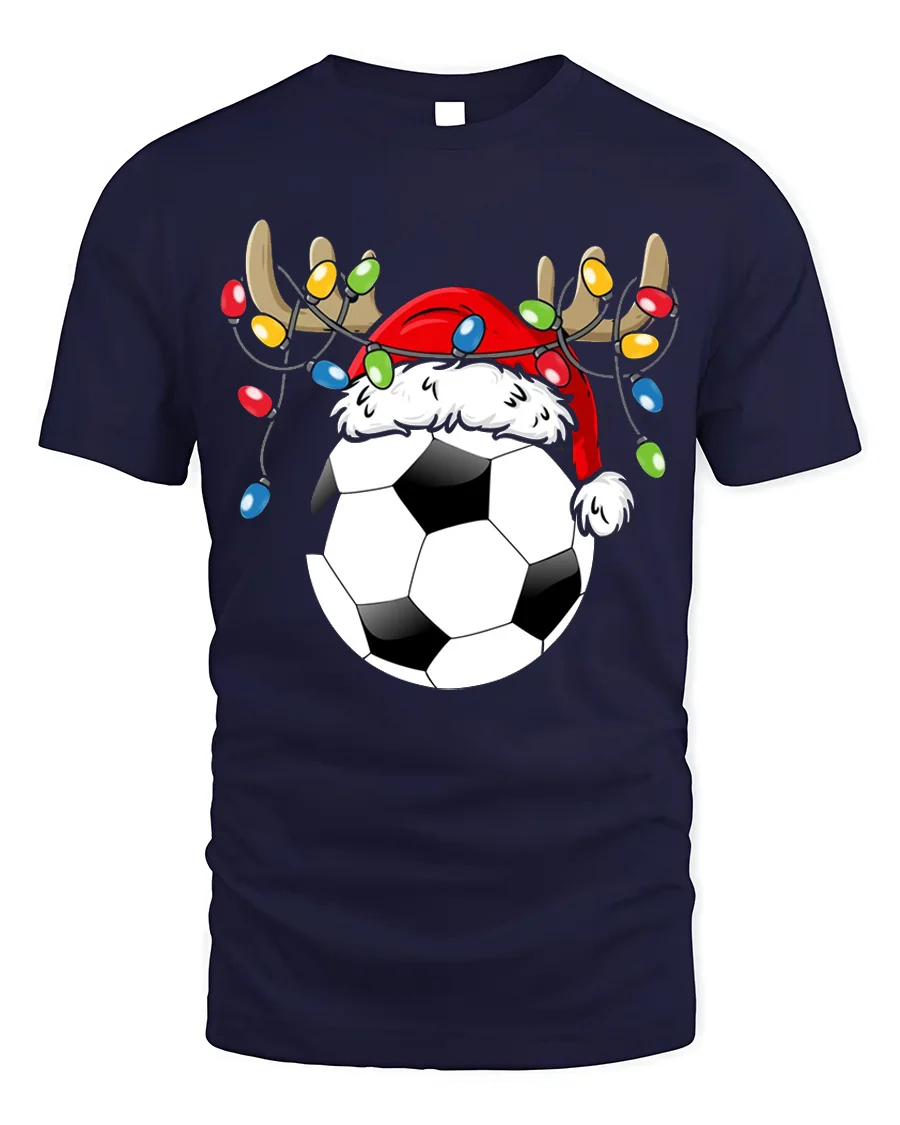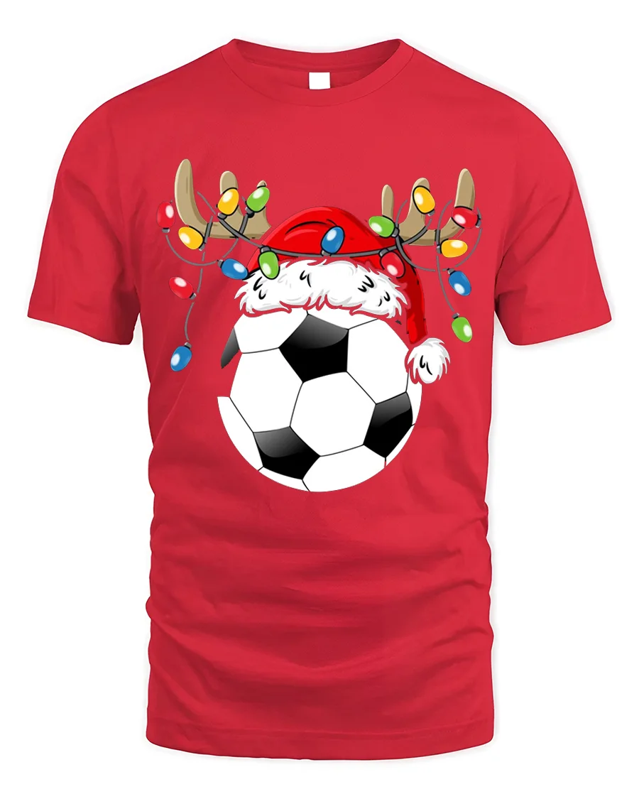 Score big this holiday season with our festive Soccer Ball Reindeer Christmas T-shirt! This unique tee features a classic soccer ball creatively transformed into a jolly reindeer, complete with antlers adorned with colorful Christmas lights and a cozy Santa hat. It’s the perfect blend of athletic passion and holiday spirit, making it an ideal gift for any soccer player, fan, or coach. Made from soft, comfortable material, this t-shirt is designed for both style and lasting wear.