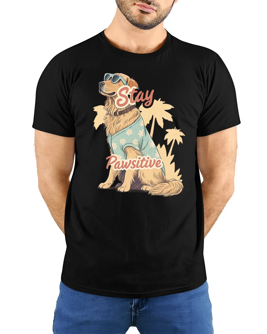 This stay pawsitive funny golden retriever dog lover graphic t shirt spreads positive energy with a cheerful design that celebrates the joyful spirit of dogs.
