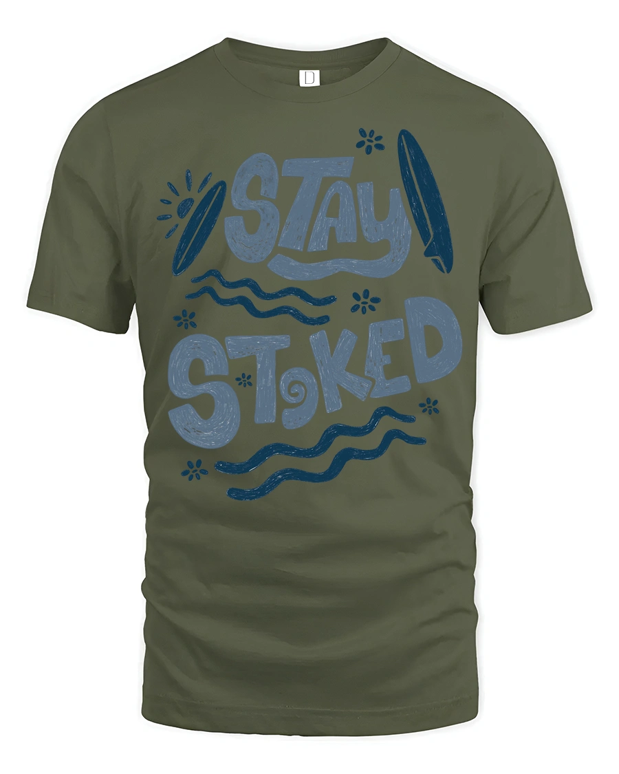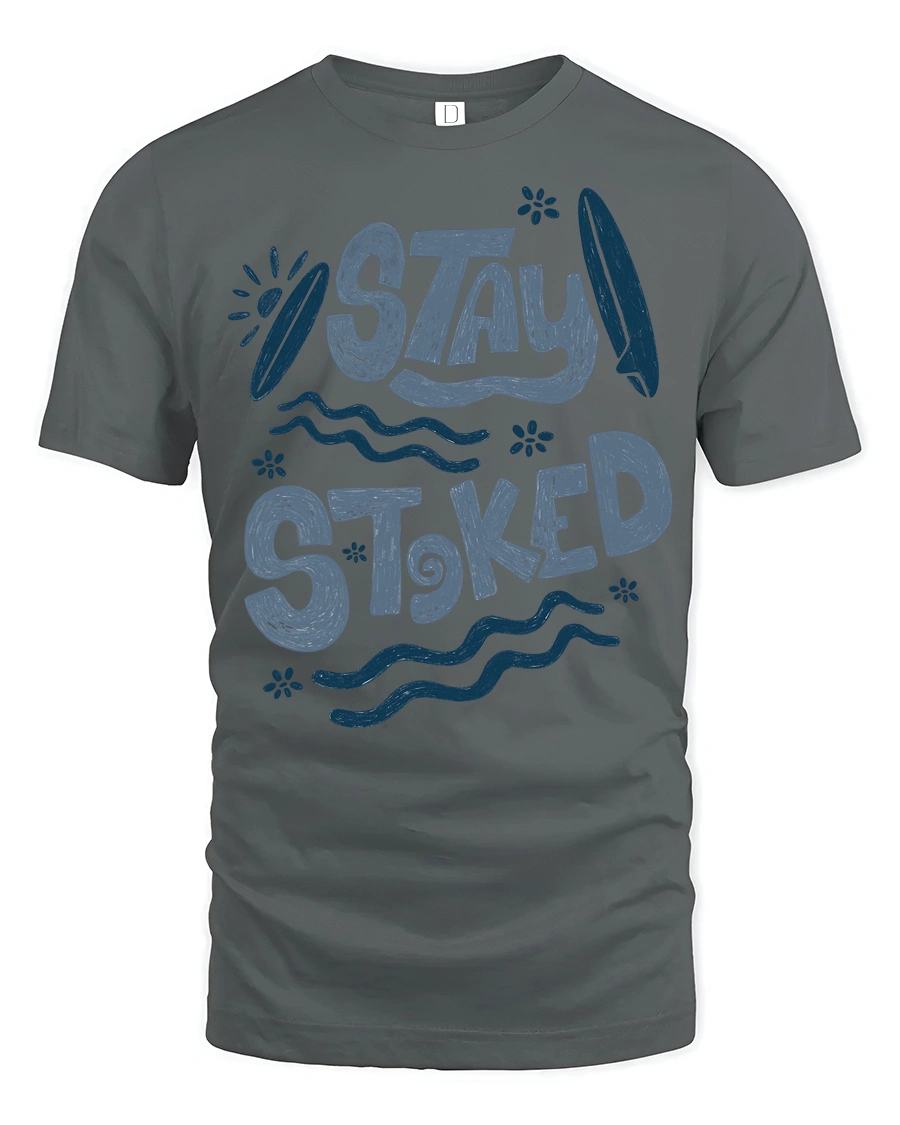 Show your passion for ocean lifestyle with this Stay Stoked Surf Graphic Tee Beach Lover Positive Vibes featuring bold typography combined with surf inspired artistic elements. The expressive design reflects enthusiasm for sunshine, waves, and coastal adventure, creating a visual style that feels energetic and modern. The playful lettering and simple ocean graphics bring a positive message that stands out while maintaining a clean balanced aesthetic.