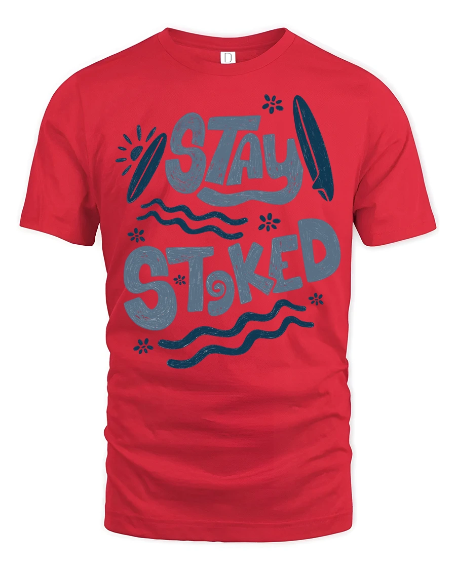 Stay Stoked Surf Graphic Tee Beach Lover Positive Vibes - red t-shirt on white background