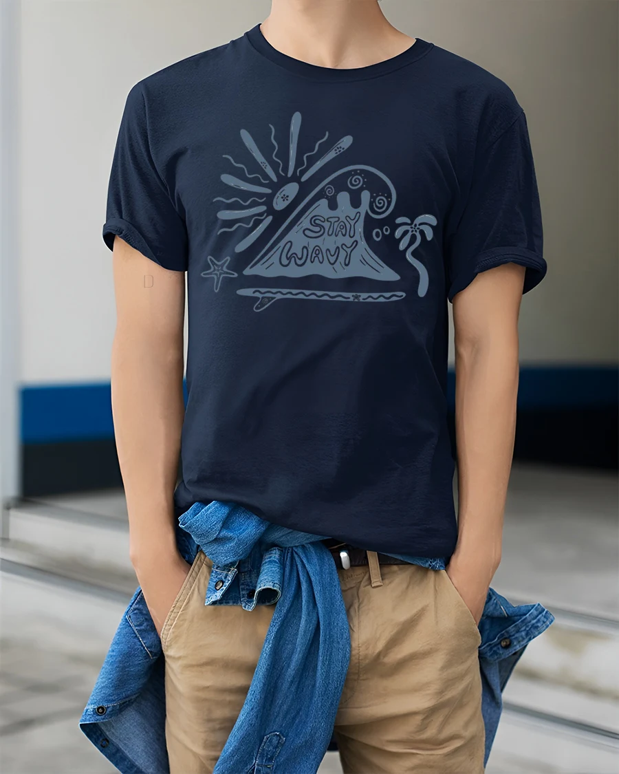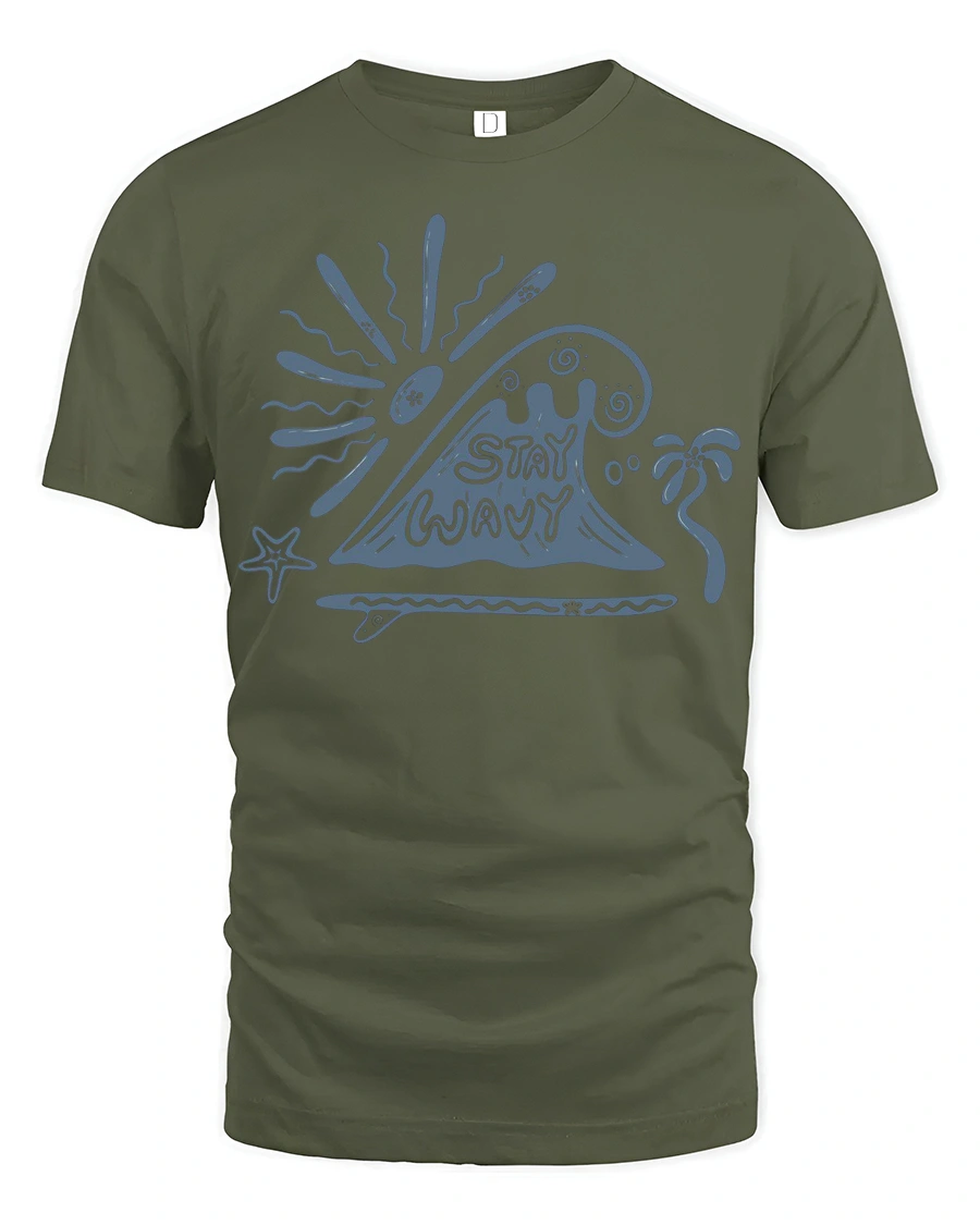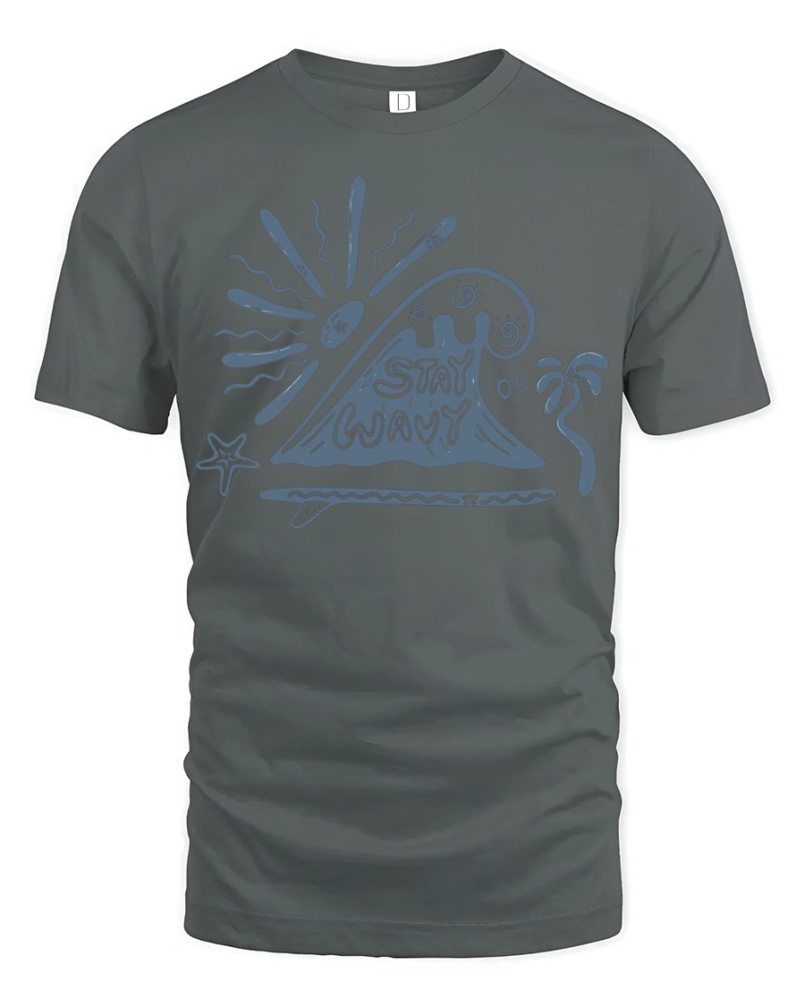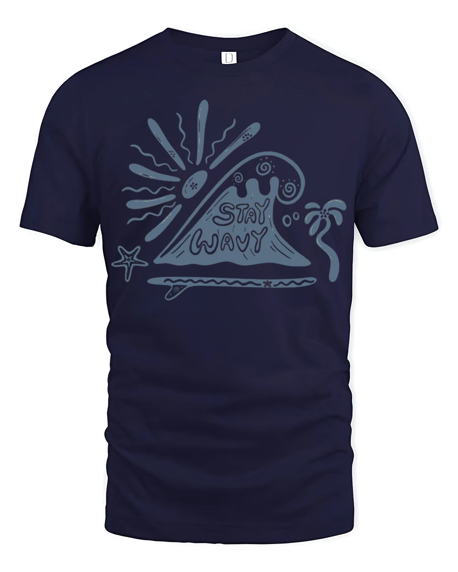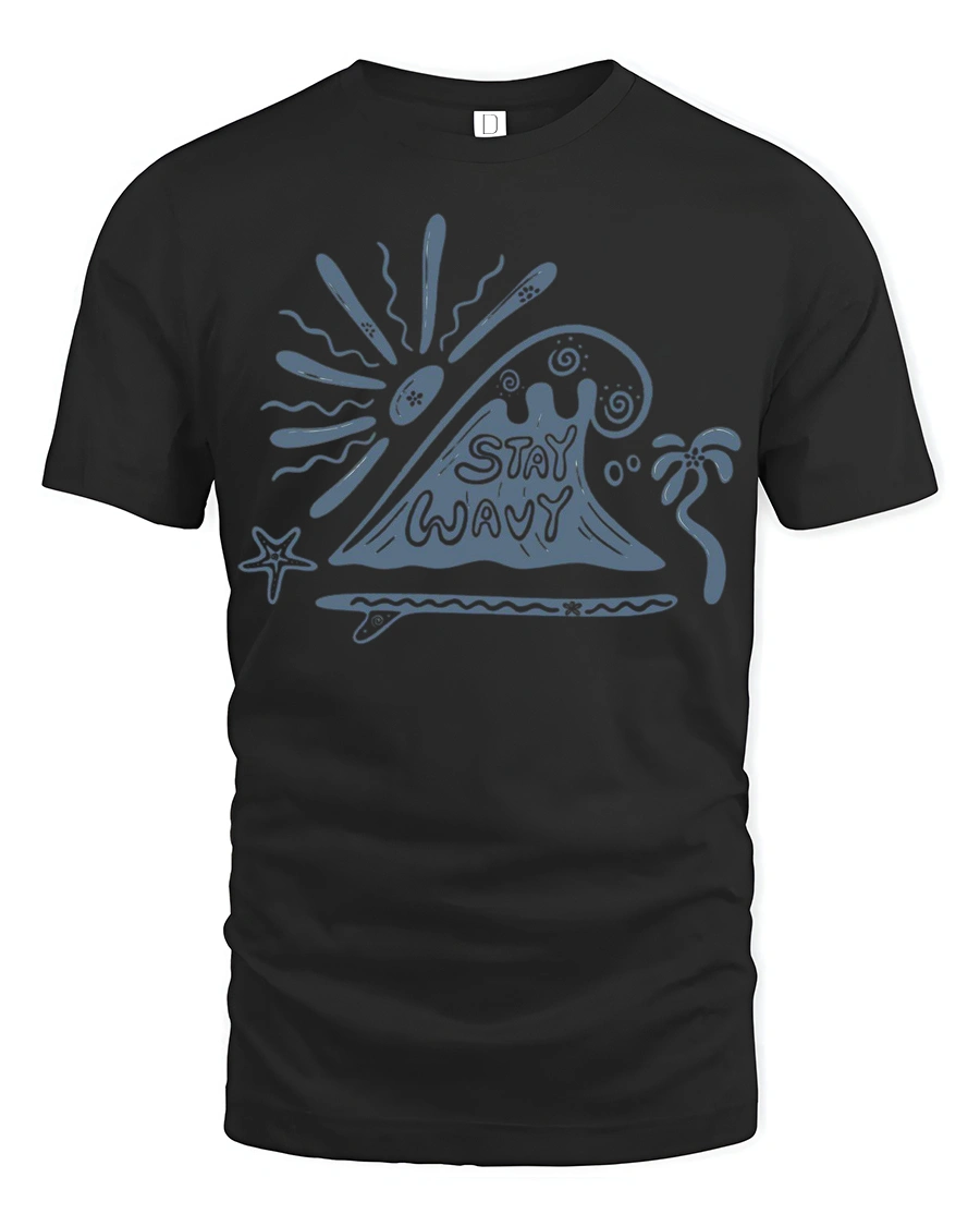 Inspired by surf culture and calming seaside scenery, this graphic tee delivers a fresh modern aesthetic that remains relevant across seasons. The stay wavy message encourages flexibility, creativity, and positive mindset, making this design a meaningful and fashionable addition to any collection of coastal inspired clothing.