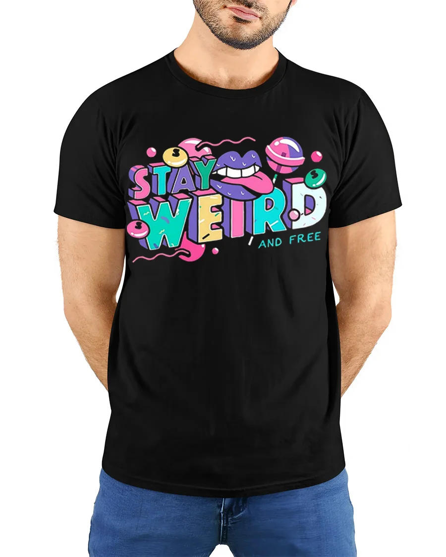 Show the world your unique vibe — stay weird, stay free, and stand out in style with this bold and colorful tee.