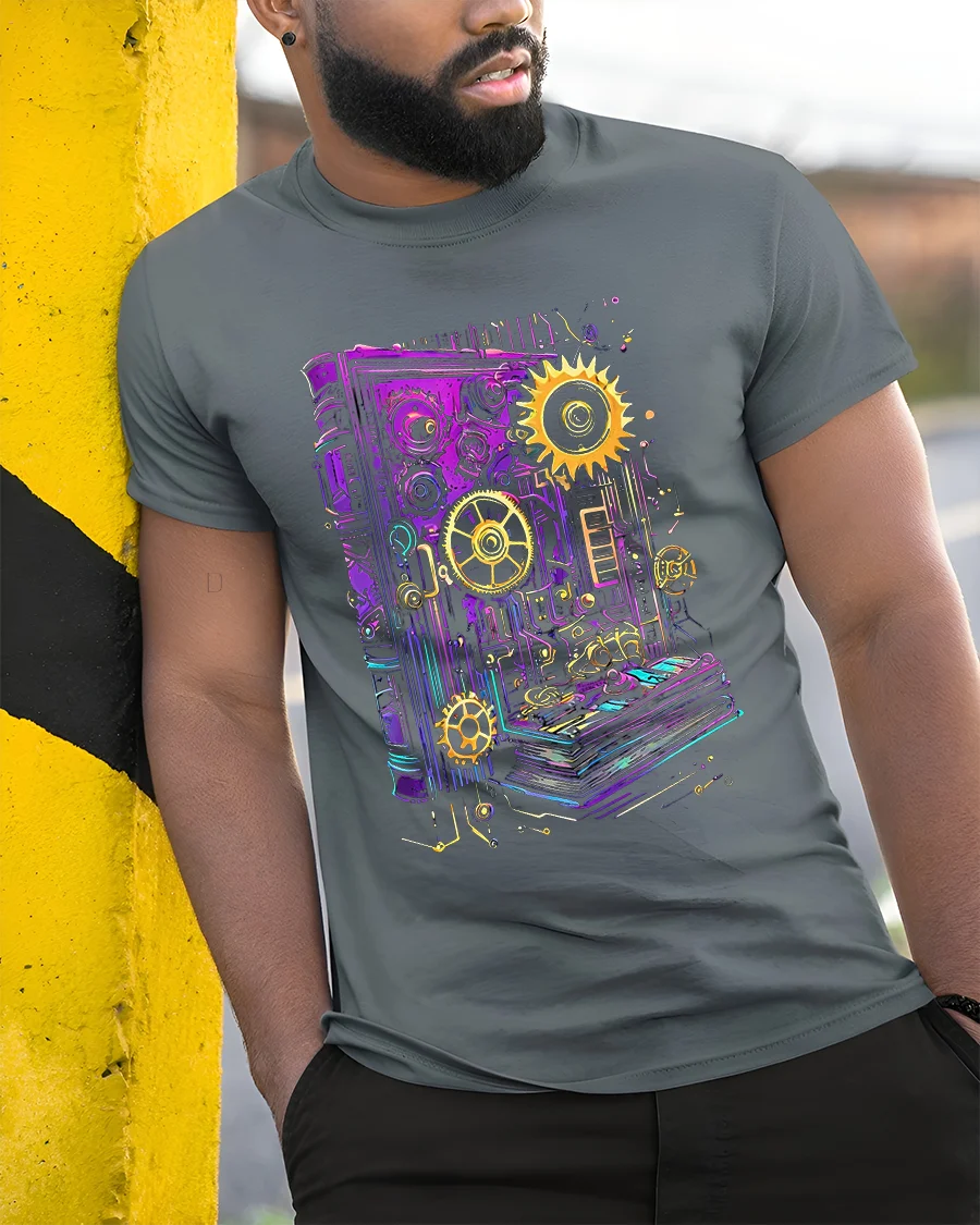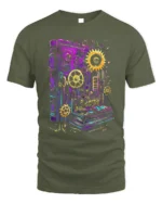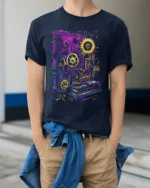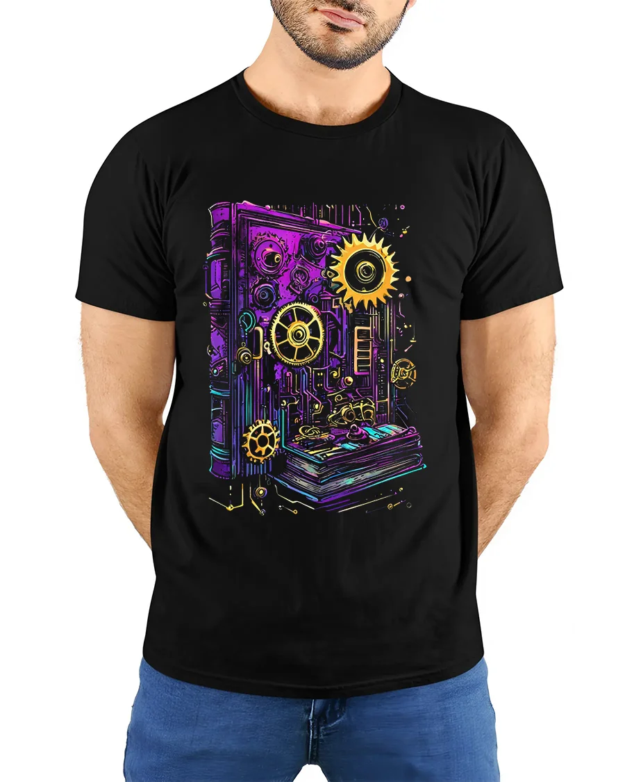 Elevate your style with the Steampunk Book Gears T-Shirt – Unique Mechanical Design Tee. This eye-catching t-shirt features a captivating design that blends the intellectual charm of books with the intricate mechanics of steampunk. The vibrant purple and gold gears stand out against the dark background, creating a truly unique and artistic statement. Perfect for fans of steampunk, science fiction, retro-futurism, or anyone who appreciates a touch of mechanical ingenuity in their wardrobe.