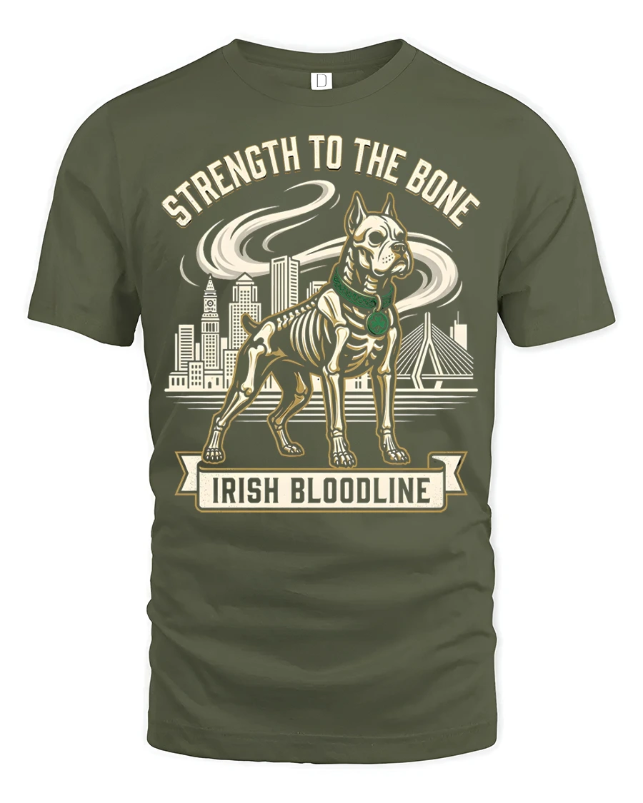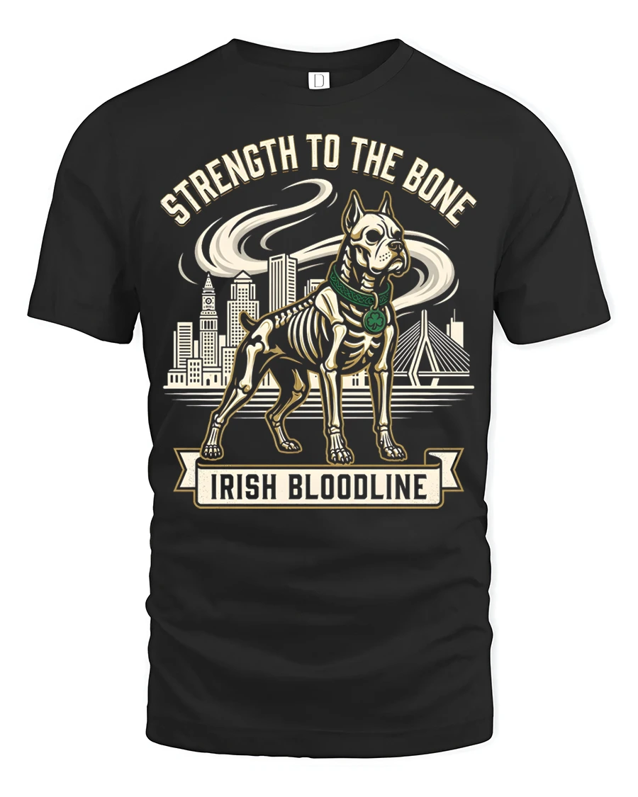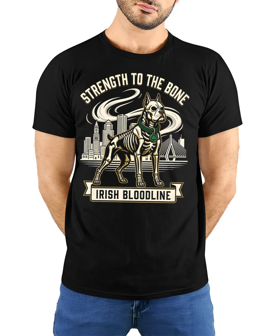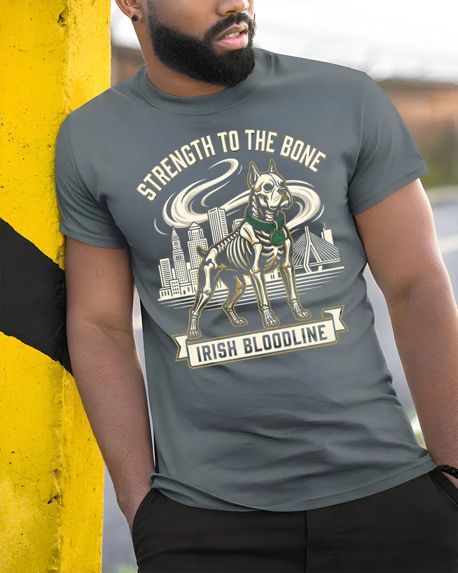 Strength To The Bone Irish Bloodline Dog Graphic T Shirt represents courage loyalty and heritage with a unique artistic approach.