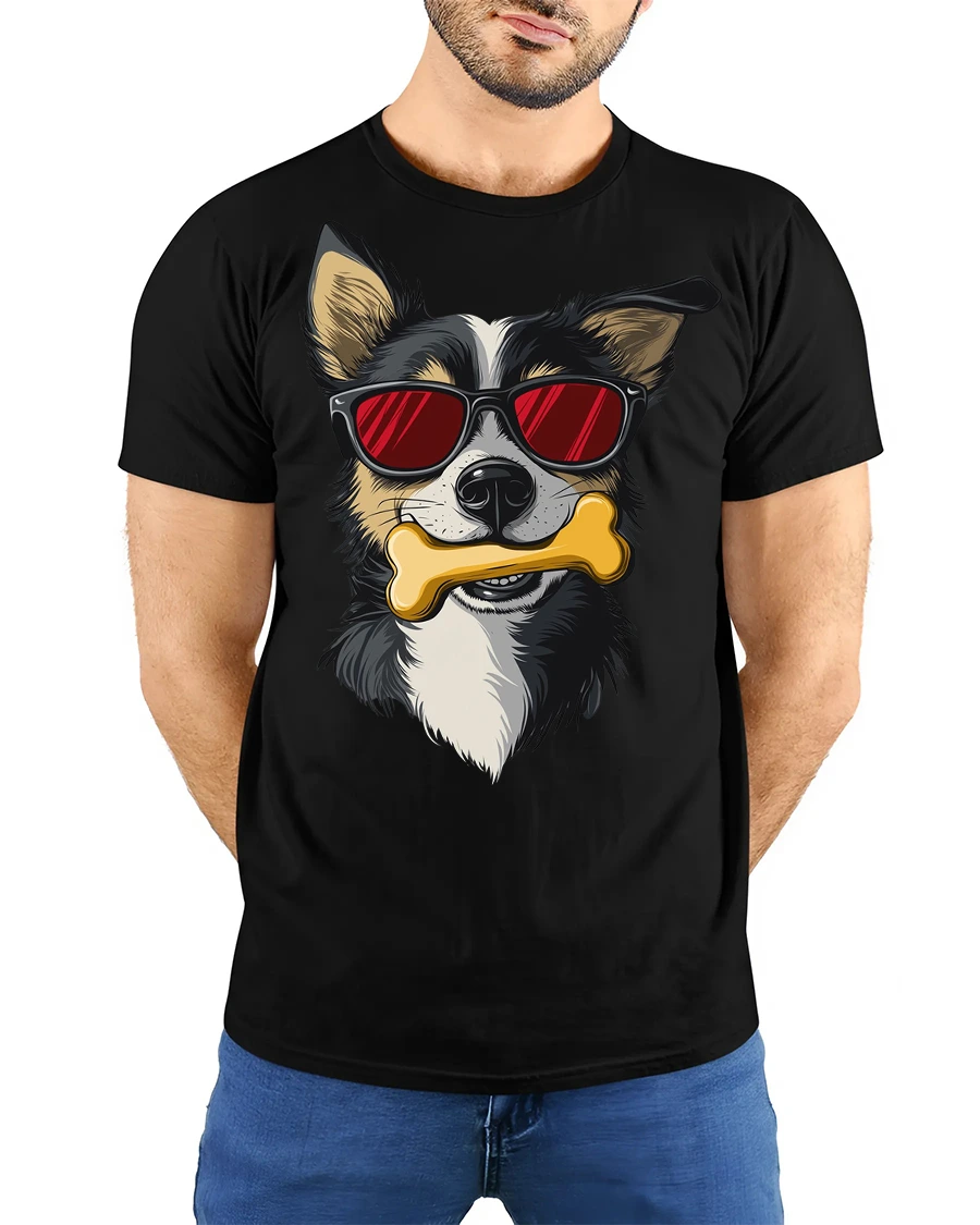 Home Hobbies Stylish Dog Wearing Shades With Bone Fun Graphic Tee Shirt