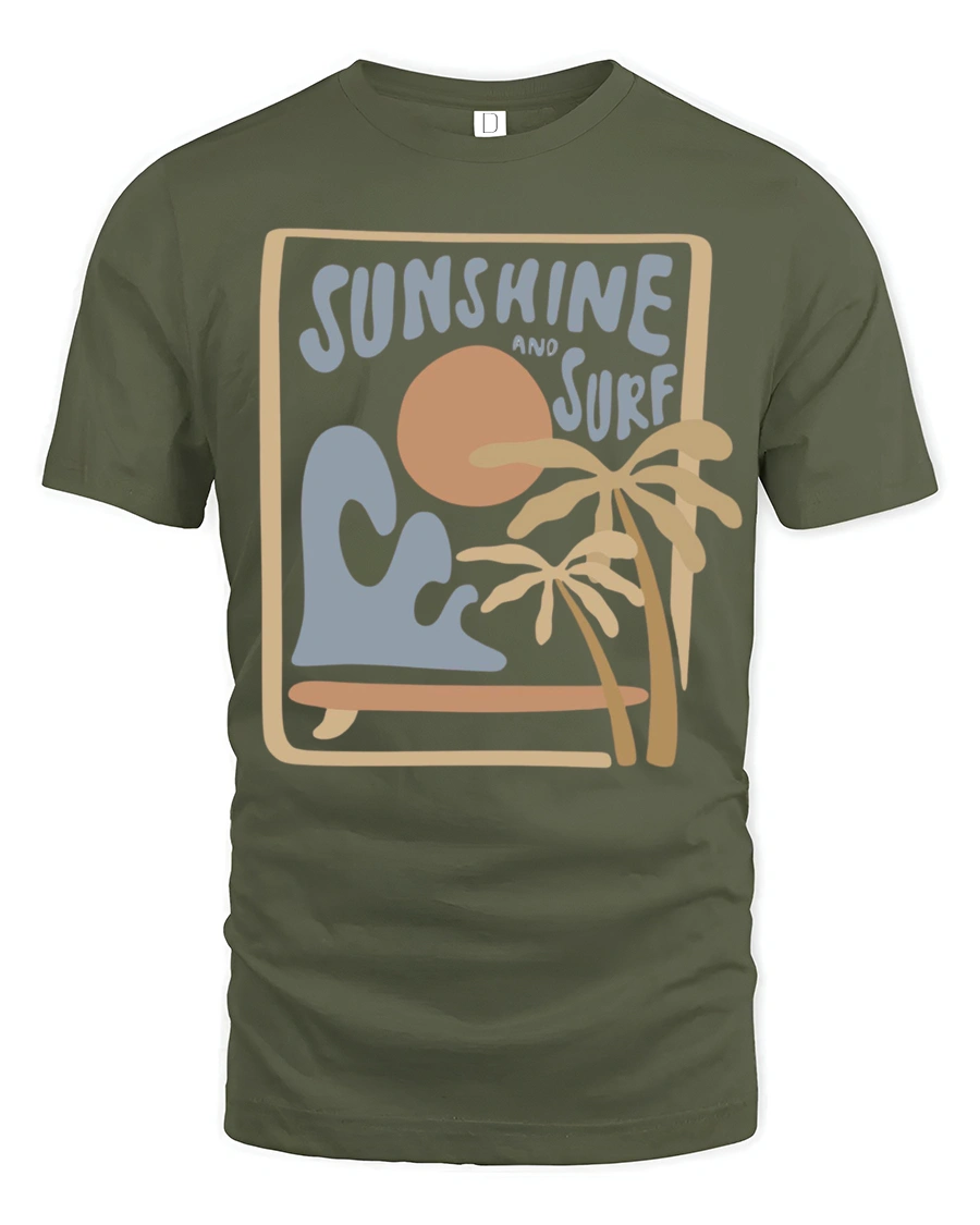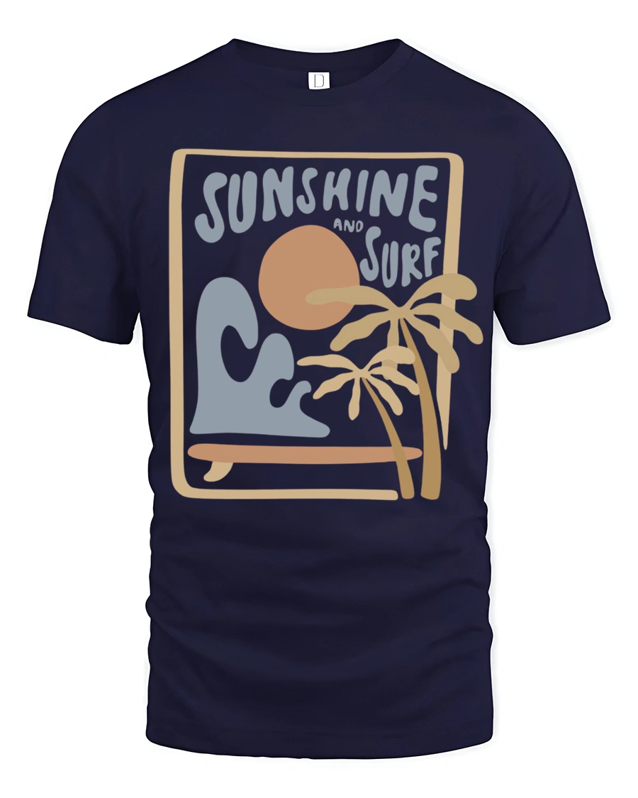Perfect for beach lovers surfers travelers and fans of laid back summer style this sunshine graphic tee brings relaxed charm to any wardrobe. The warm coastal illustration symbolizes happiness adventure and love for the sea making it ideal for vacations weekend outings or casual daily wear. Designed for comfort and timeless appeal this surf tshirt celebrates creativity sunshine and effortless beach lifestyle spirit.