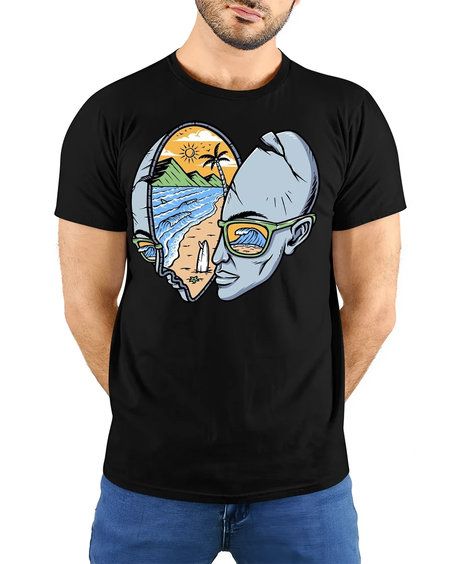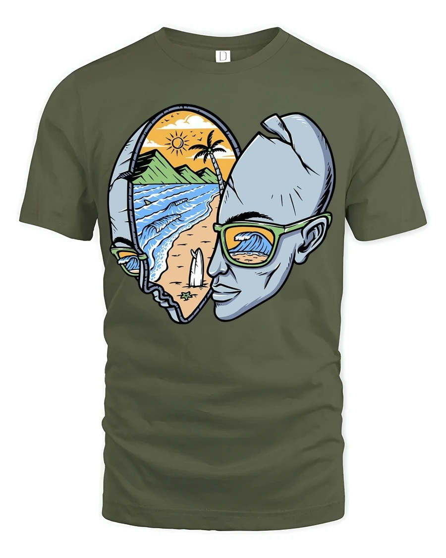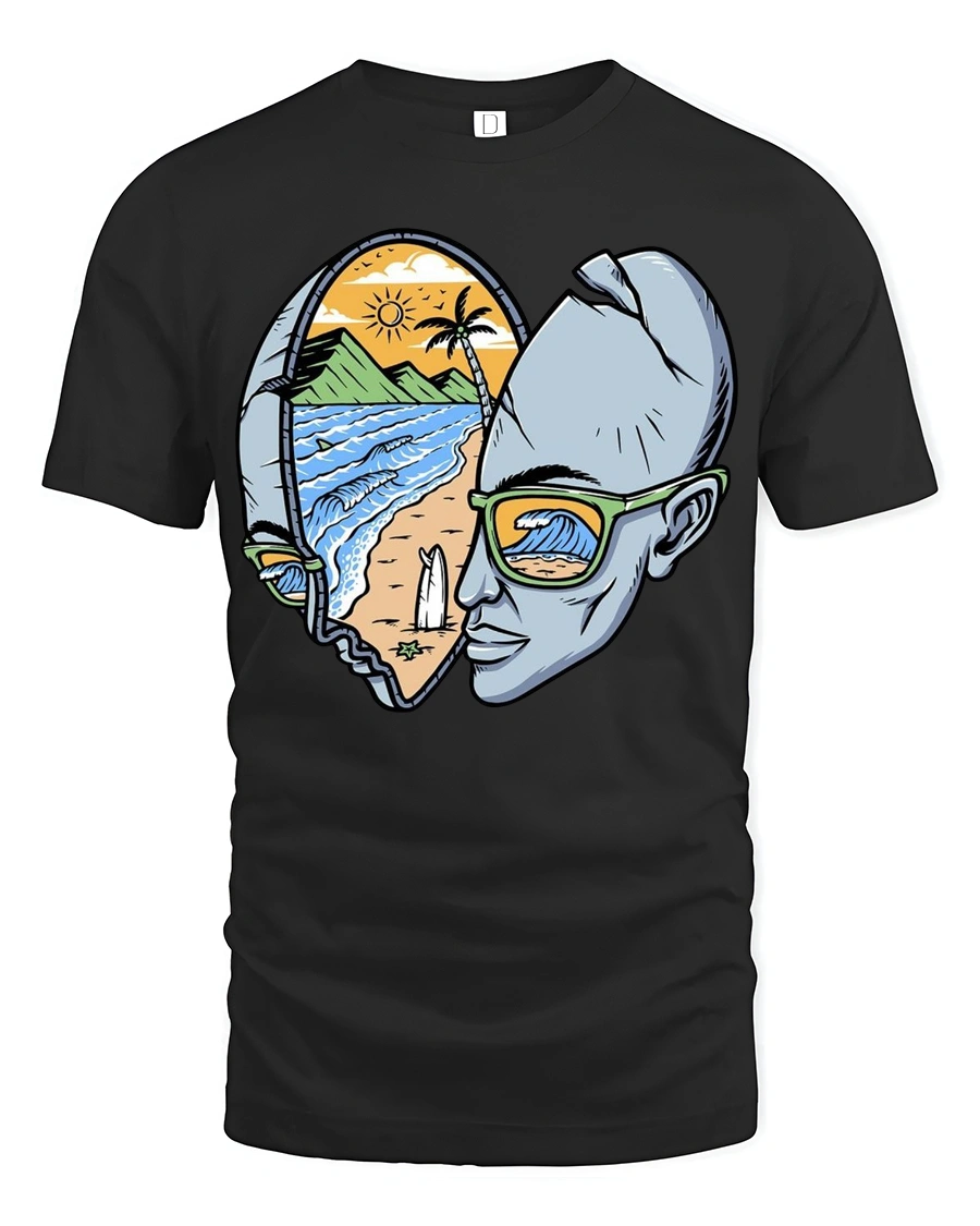Express creativity and love for the ocean with the Surf Inside Your Mind Graphic Tshirt Beach Dream Vision Style that captures the connection between imagination and coastal lifestyle. The artistic illustration combines a human profile with a scenic beach landscape symbolizing freedom inspiration and peaceful ocean energy. Soft comfortable fabric provides a relaxed wearing experience while the creative design adds unique personality to everyday fashion.