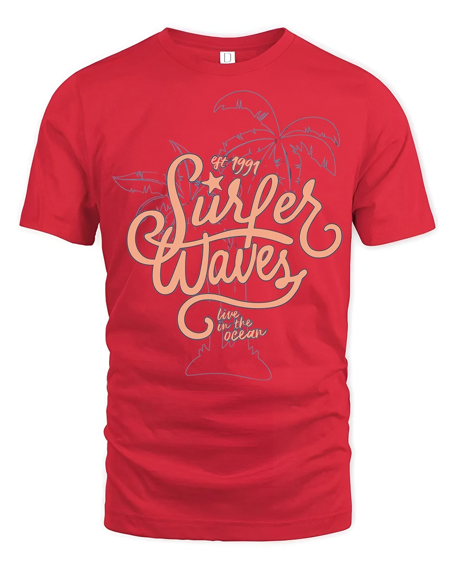 Surfer Waves Retro Beach Graphic Tee Ocean Lifestyle Style - red t-shirt on white background