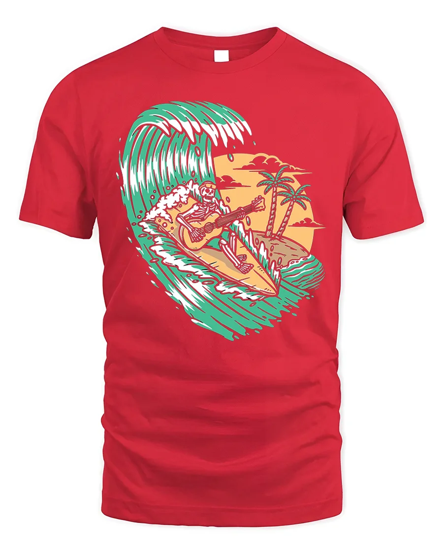 The Surfing Skeleton Guitar Tropical Wave Graphic T-Shirt is also a great gift idea for surfers, musicians, and anyone who loves bold, unconventional designs. It’s perfect for summer vacations, beach parties, or simply making a statement about your love for surfing and music. Step into the spotlight with this one-of-a-kind skeleton surf tee and show off your adventurous side with confidence.