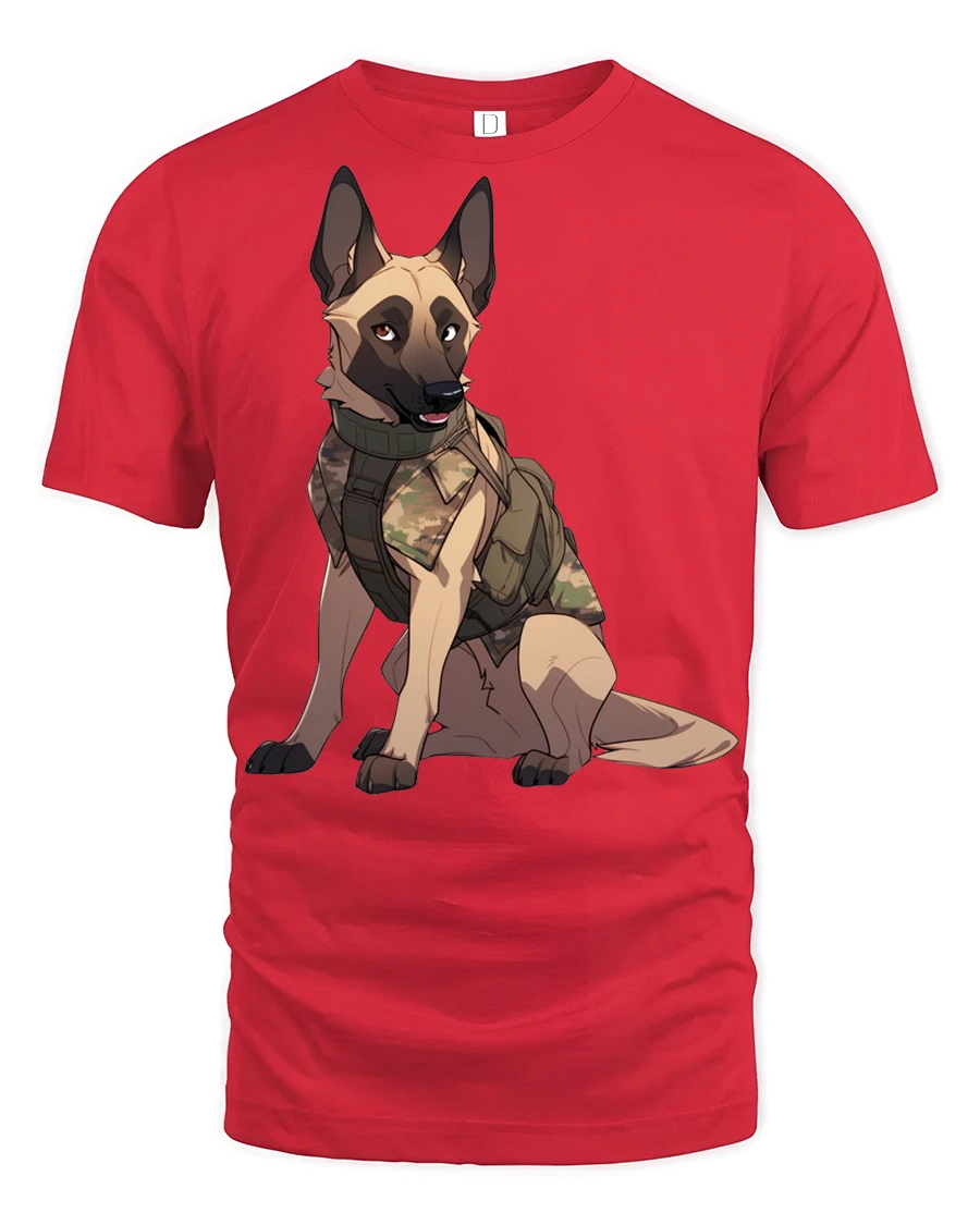 Tactical German Shepherd Dog Graphic T Shirt Military K9 Style Tee - red t-shirt on white background