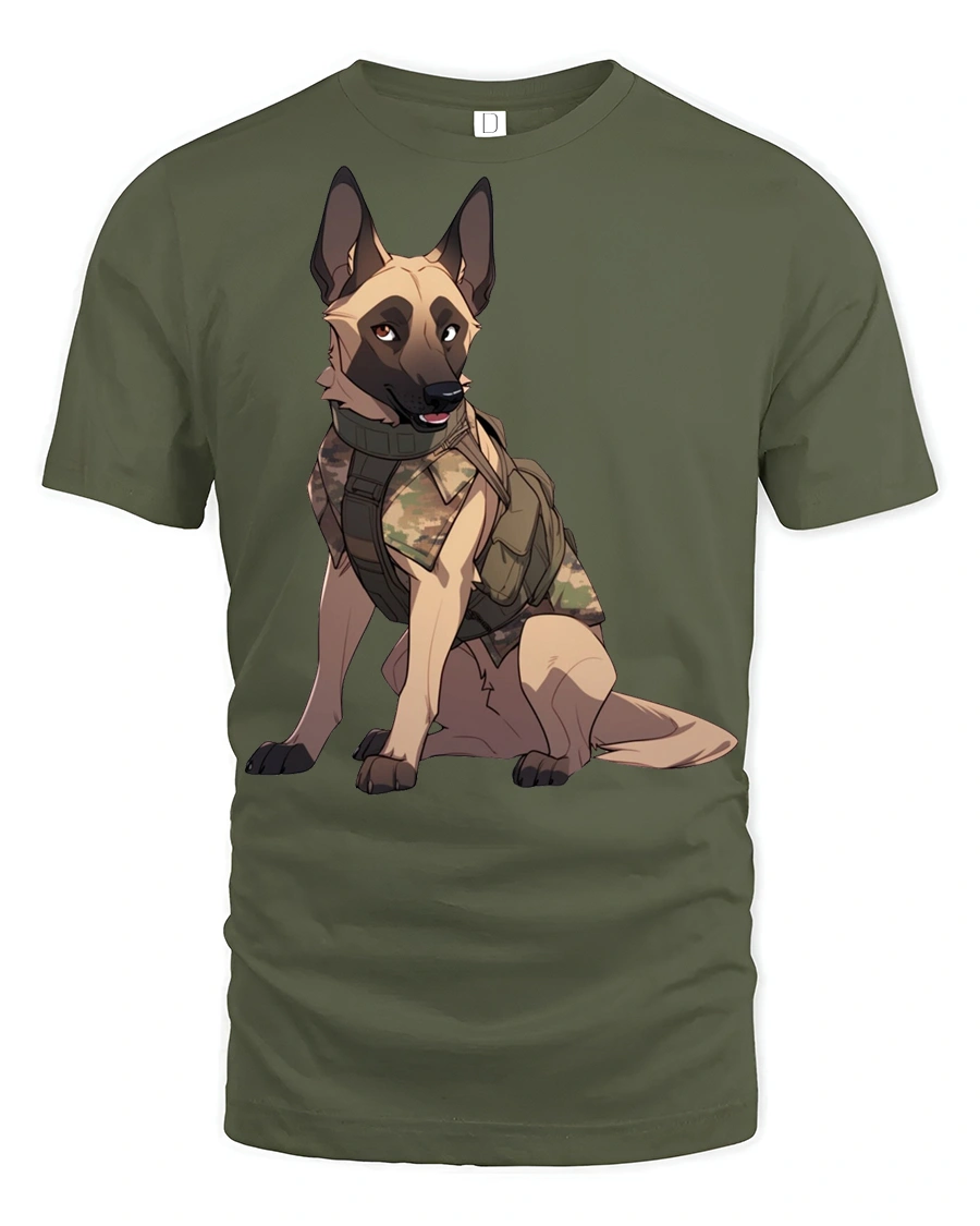 Tactical German Shepherd Dog Graphic T Shirt Military K9 Style Tee - military green t-shirt on white background