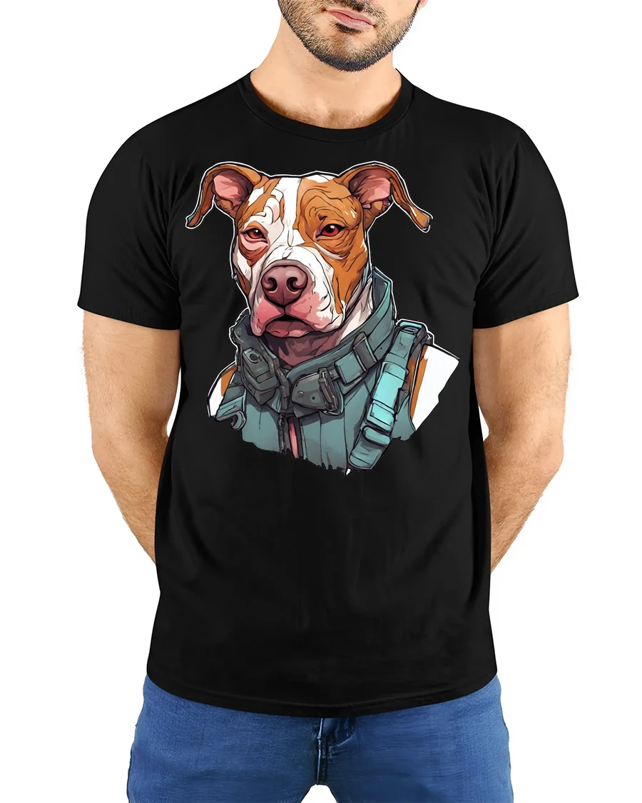 Tactical Pitbull Dog Graphic T Shirt Cool Guard Dog Streetwear Tee