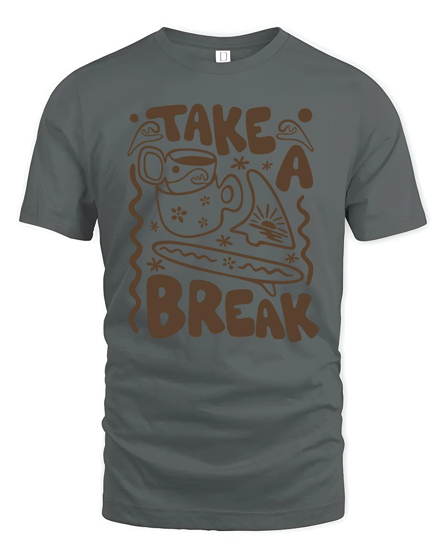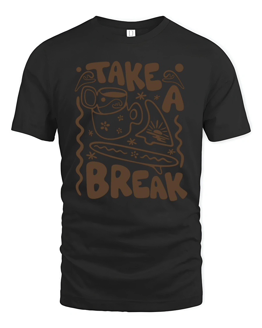 Encourage balance and positivity with this Take A Break Coffee Graphic Tee Relax Positive Vibes Style featuring playful typography combined with cozy coffee inspired illustration. The creative design highlights the importance of slowing down and enjoying simple everyday moments. The balanced artistic layout blends modern minimal style with warm comforting visual elements that feel friendly and relatable.