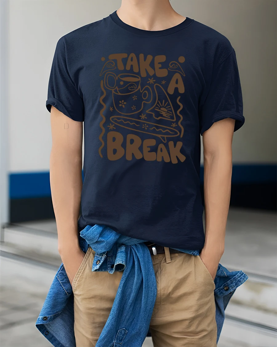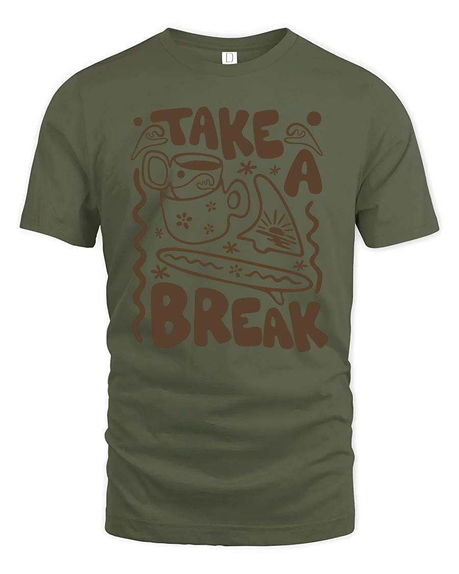 Inspired by self care mindset and cozy lifestyle trends, this graphic tee delivers a gentle reminder to pause and recharge. The take a break message reflects calm energy and thoughtful living, creating a meaningful design that remains fashionable while promoting a relaxed positive attitude.