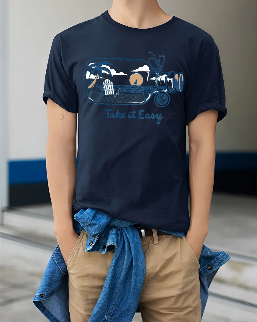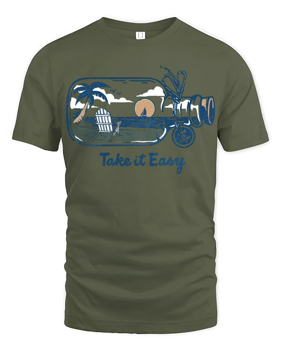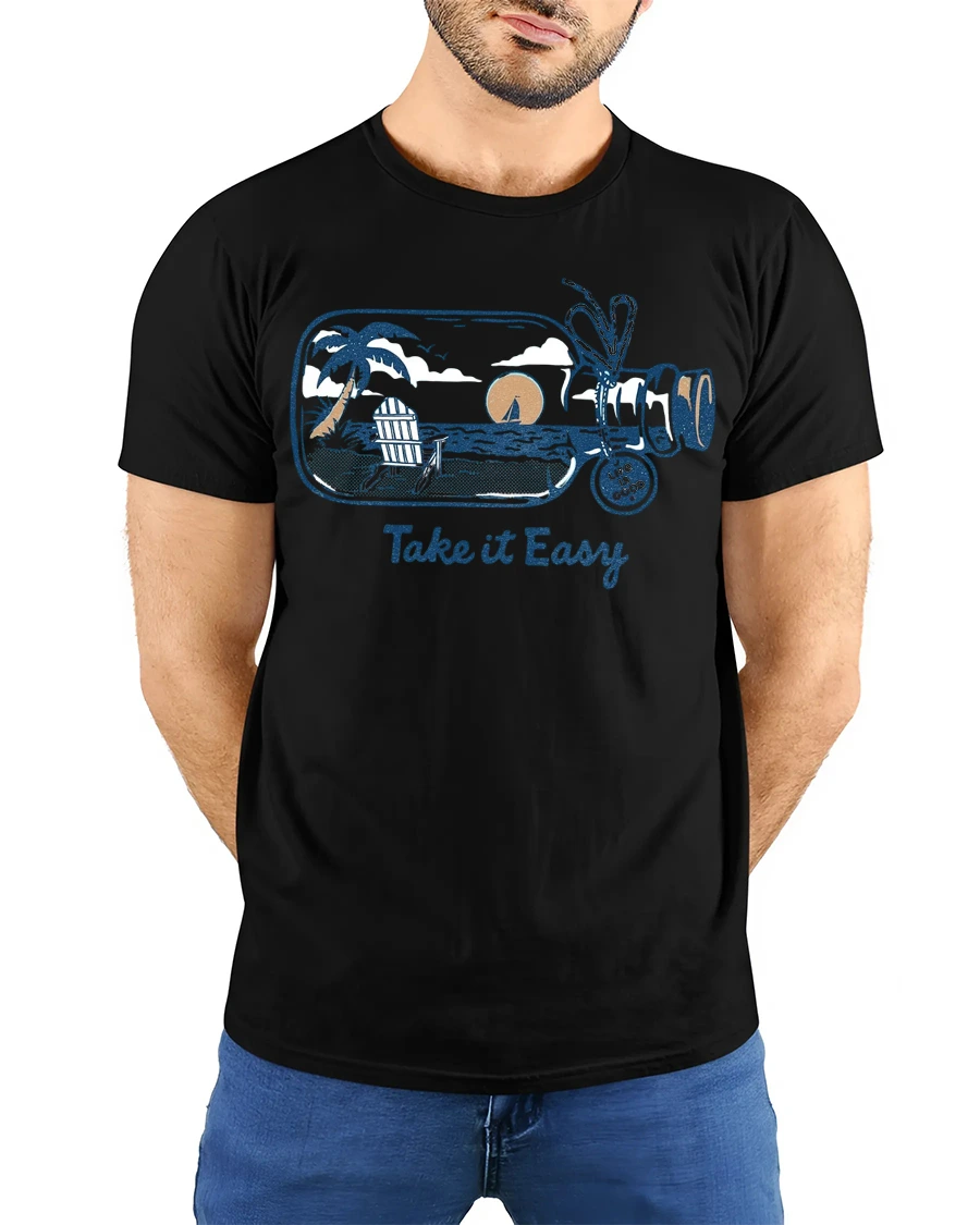 Take It Easy Beach Sunset Graphic Tee Relax Coastal Style expresses calm energy inspired by peaceful ocean views and warm sunset moments.