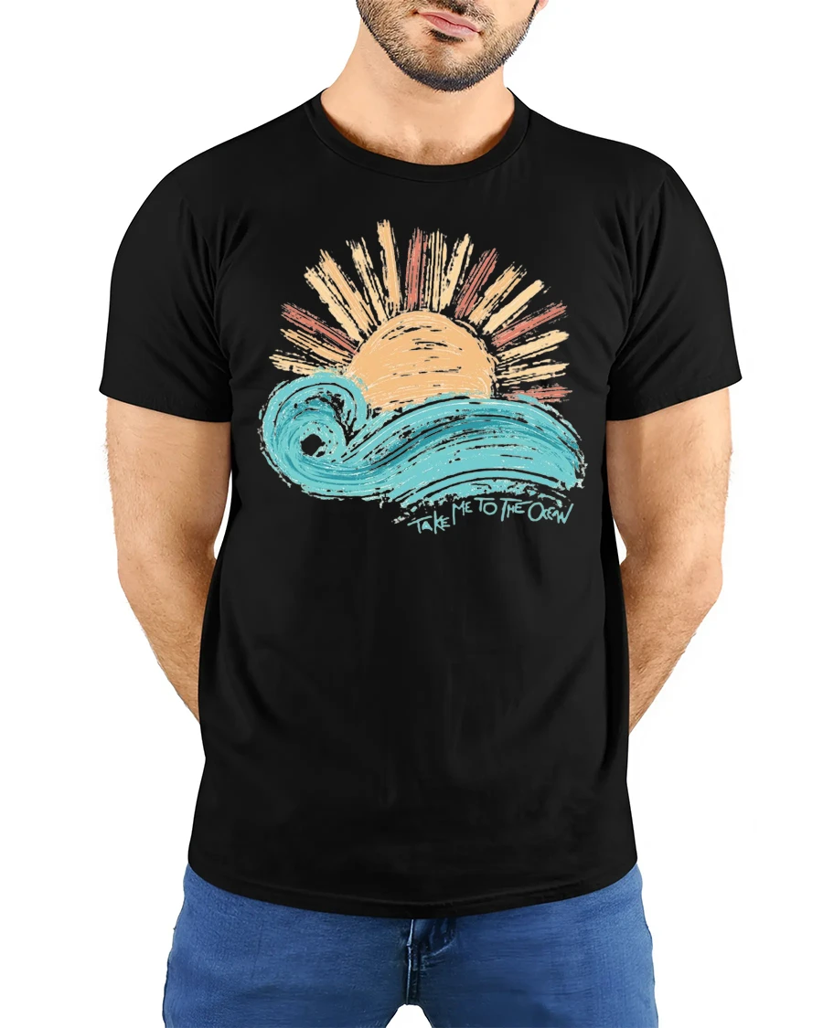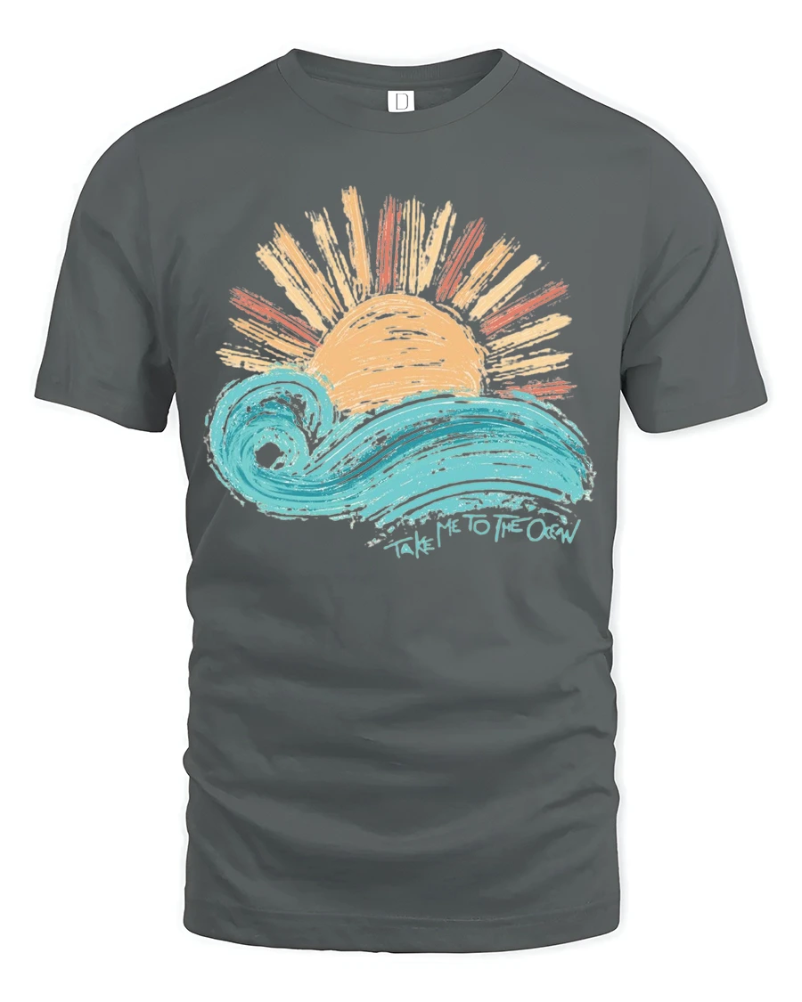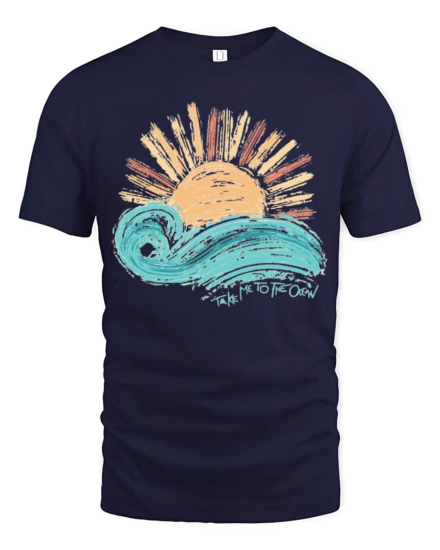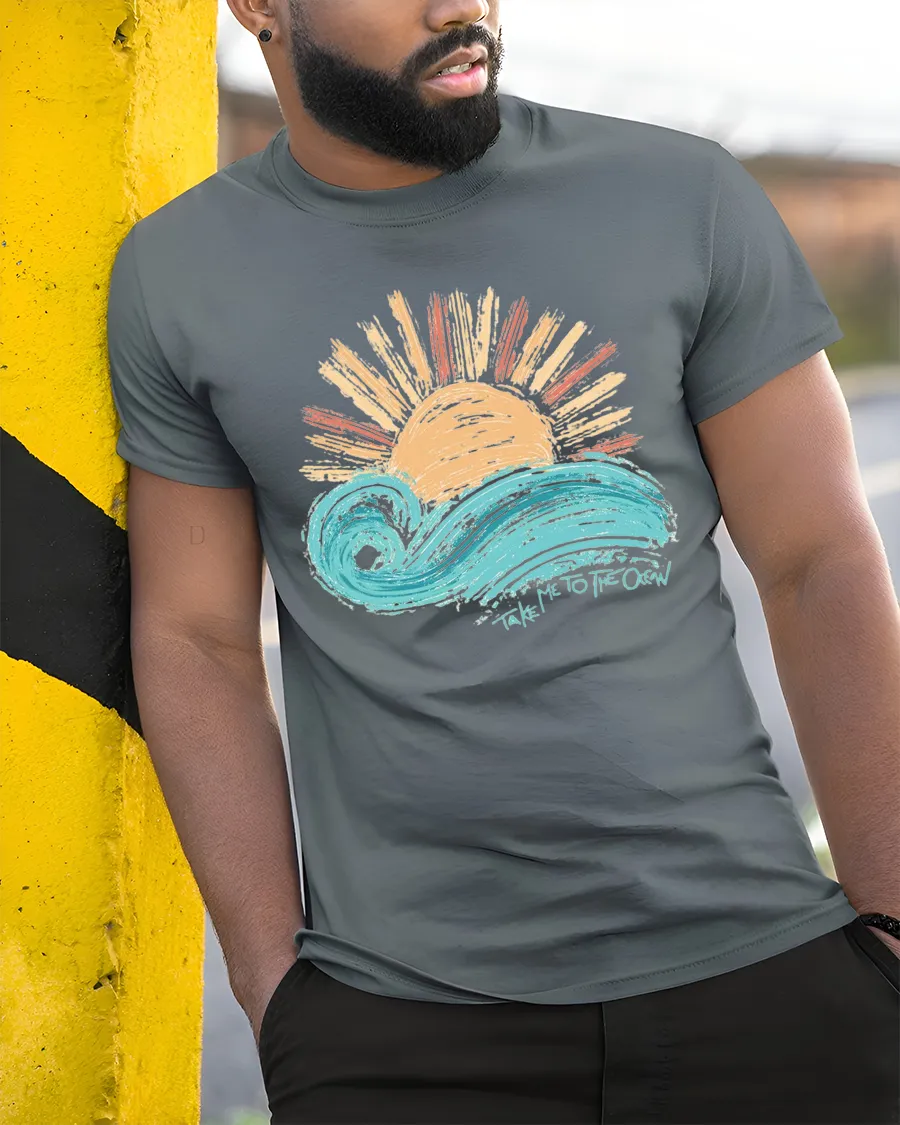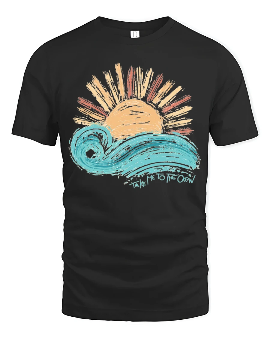Take Me To The Ocean Wave Sunset Graphic T Shirt Tee captures the beauty and calm of seaside living with a vibrant artistic design.