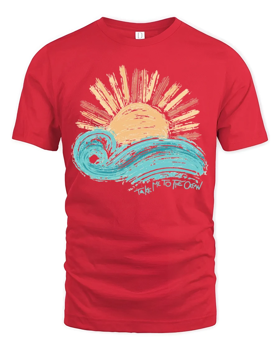 Take Me To The Ocean Wave Sunset Graphic T Shirt Tee - red t-shirt on white background