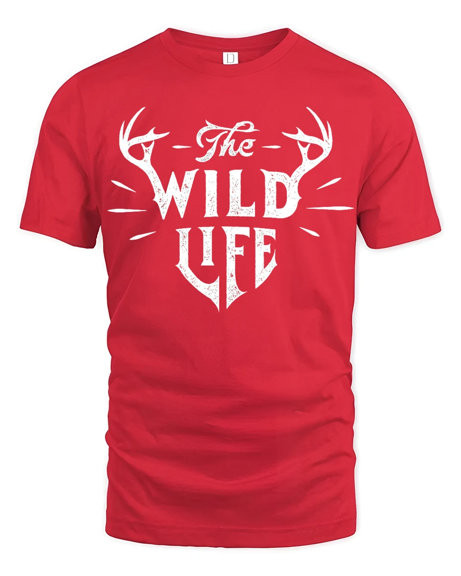 The Wild Life Deer Antlers Graphic T Shirt Rustic Nature Style Tee - red t-shirt on white background