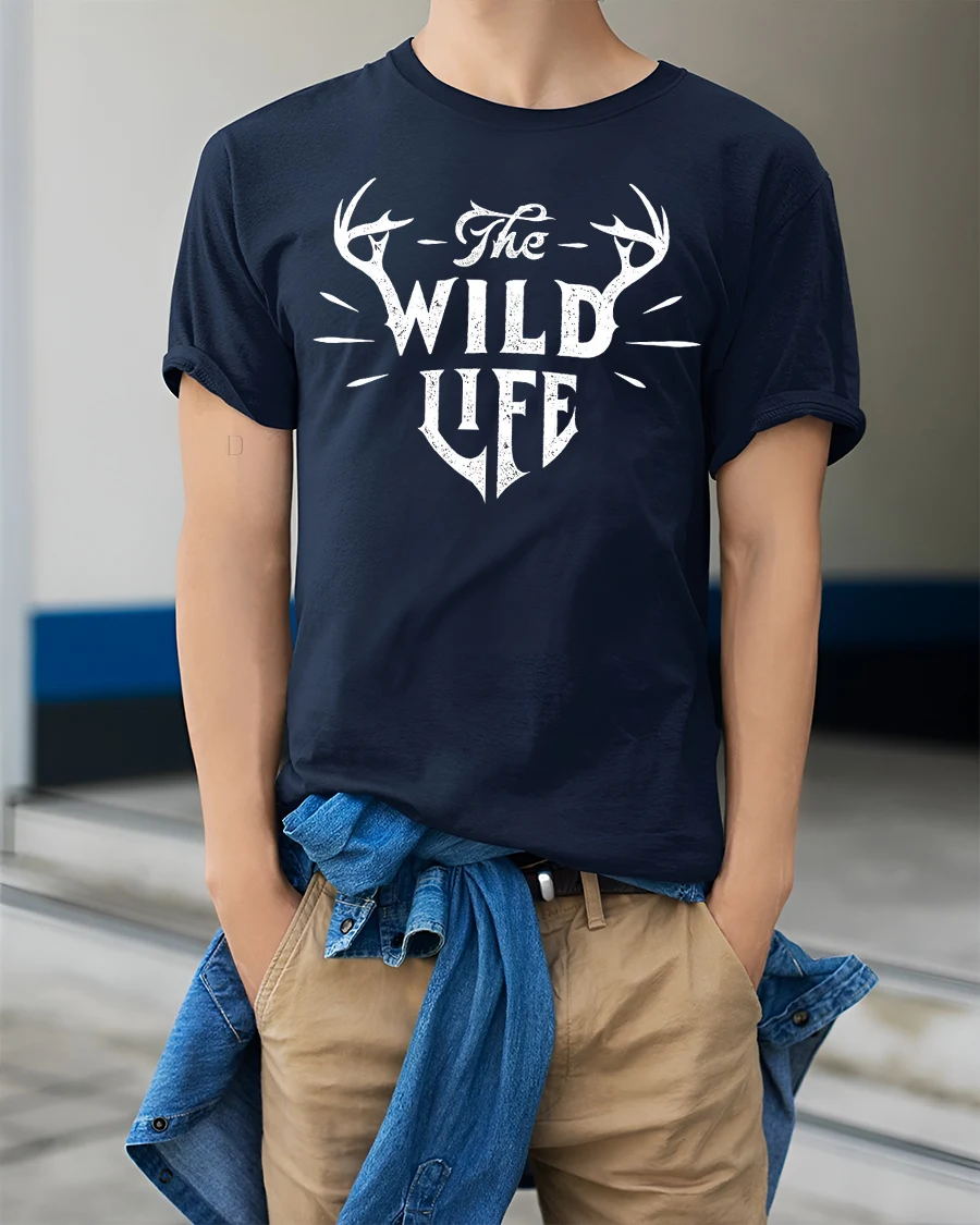 The Wild Life Deer Antlers Graphic T Shirt Rustic Nature Style Tee captures the spirit of adventure and freedom inspired by the outdoors. The vintage typography combined with bold antler illustration creates a timeless design that reflects passion for wilderness and exploration. The balanced composition delivers a confident and authentic look that stands out in everyday casual style.