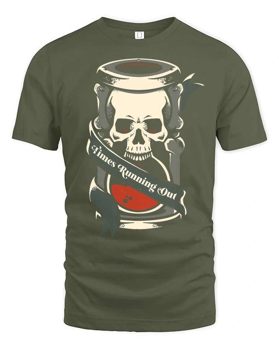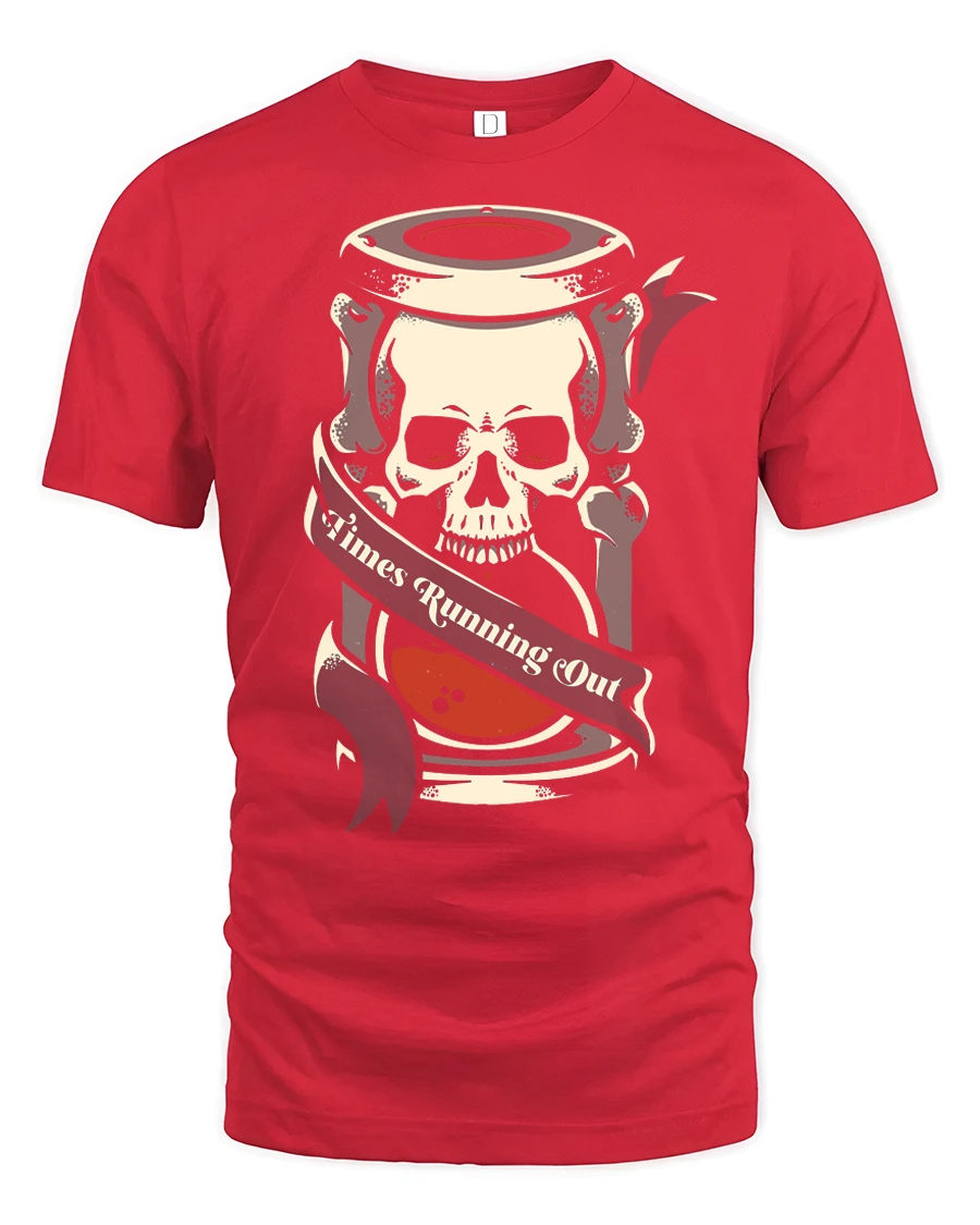 The Times Running Out Skull Hourglass Graphic Tee Gothic Tshirt blends striking symbolism with bold dark artwork creating a powerful visual statement.