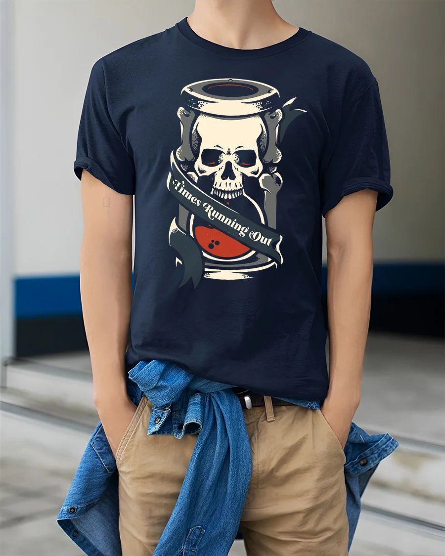 The Times Running Out Skull Hourglass Graphic Tee Gothic Tshirt expresses individuality through bold illustration and meaningful visual atmosphere.