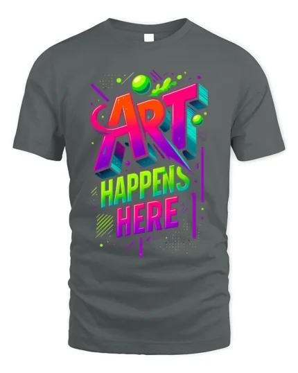Colorful Neon Art Happens Here Graphic T-Shirt