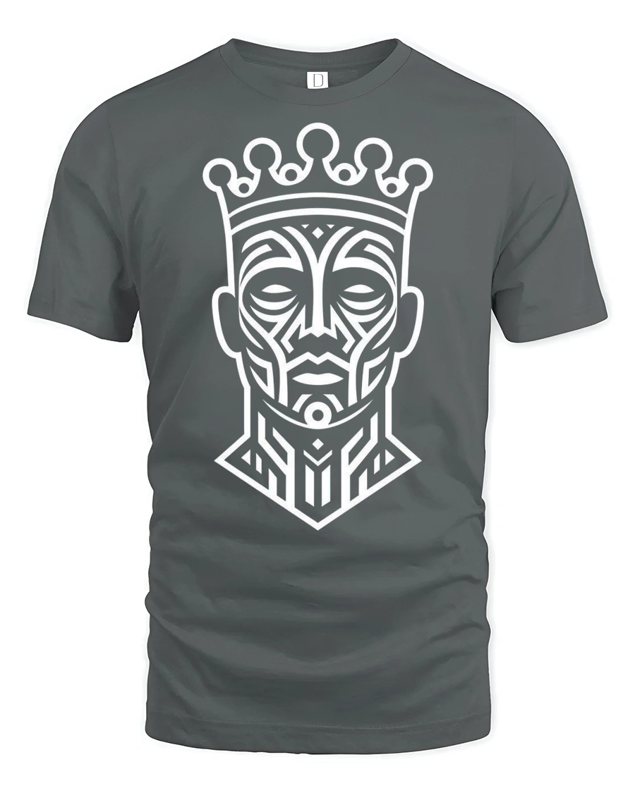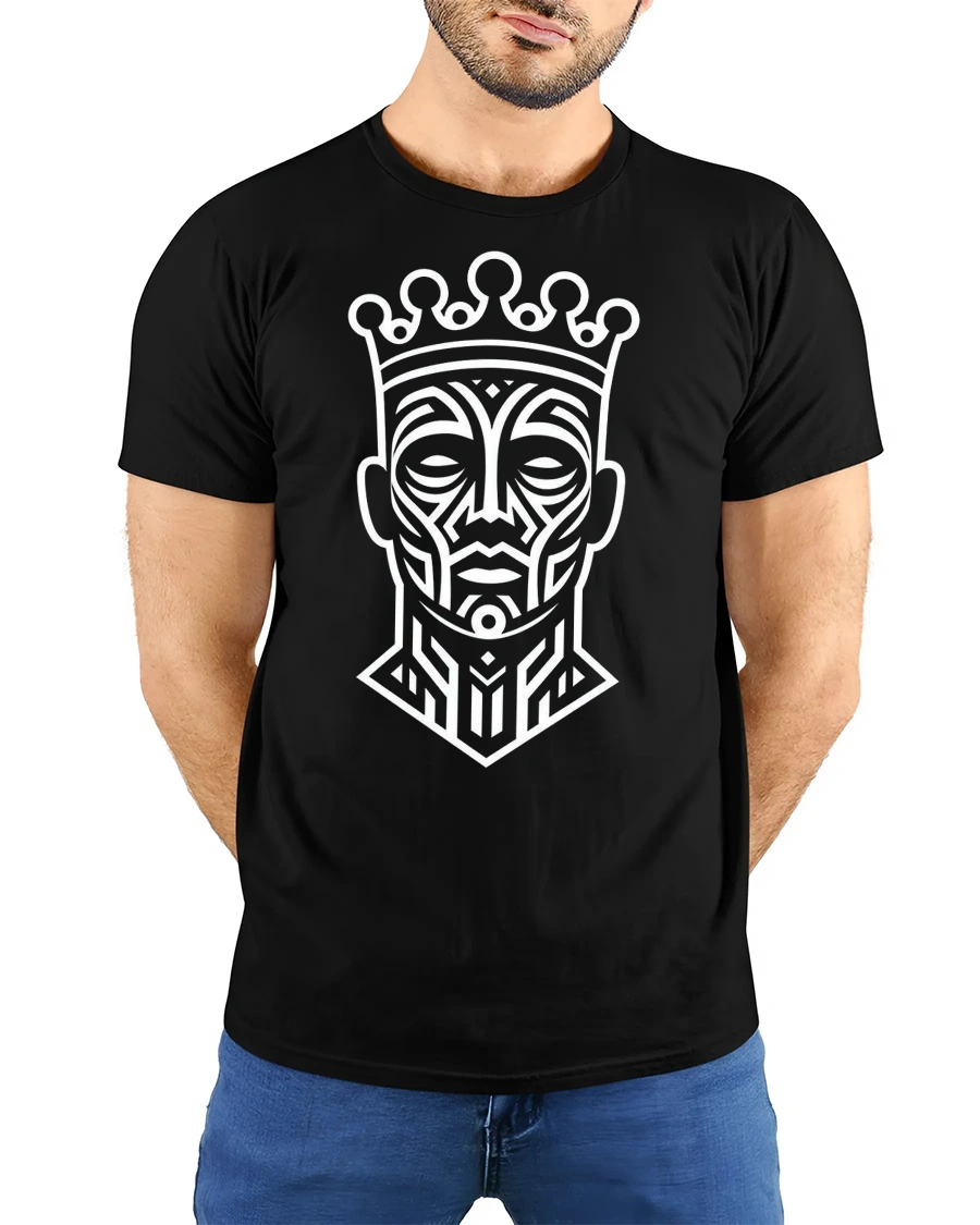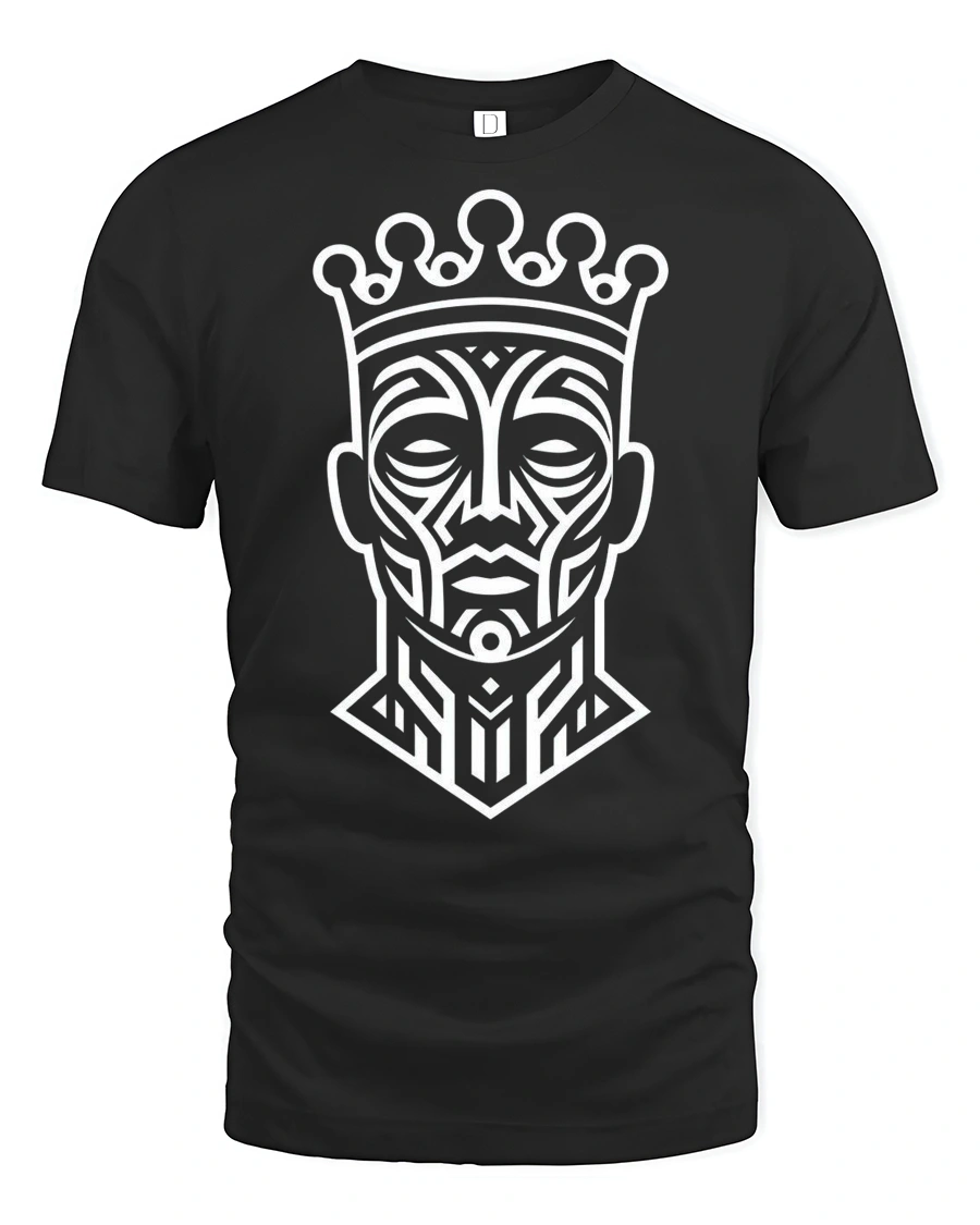 Tribal King Crown Face Abstract Art Graphic T Shirt combines bold symbolism with modern artistic design.
