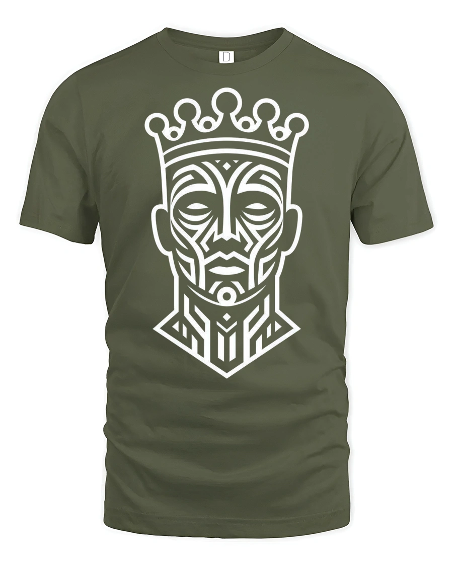 Tribal King Crown Face Abstract Art Graphic T Shirt - military green t-shirt on white background
